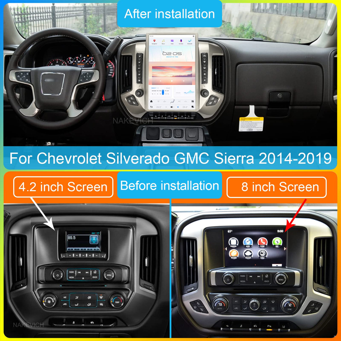 Nakevich 14.4 Inch Qualcomm Android 11 Car Radio For Chevrolet Silverado Gmc Sierra 2014 2019 Stereo Upgrade Tesla Style Dash 2K