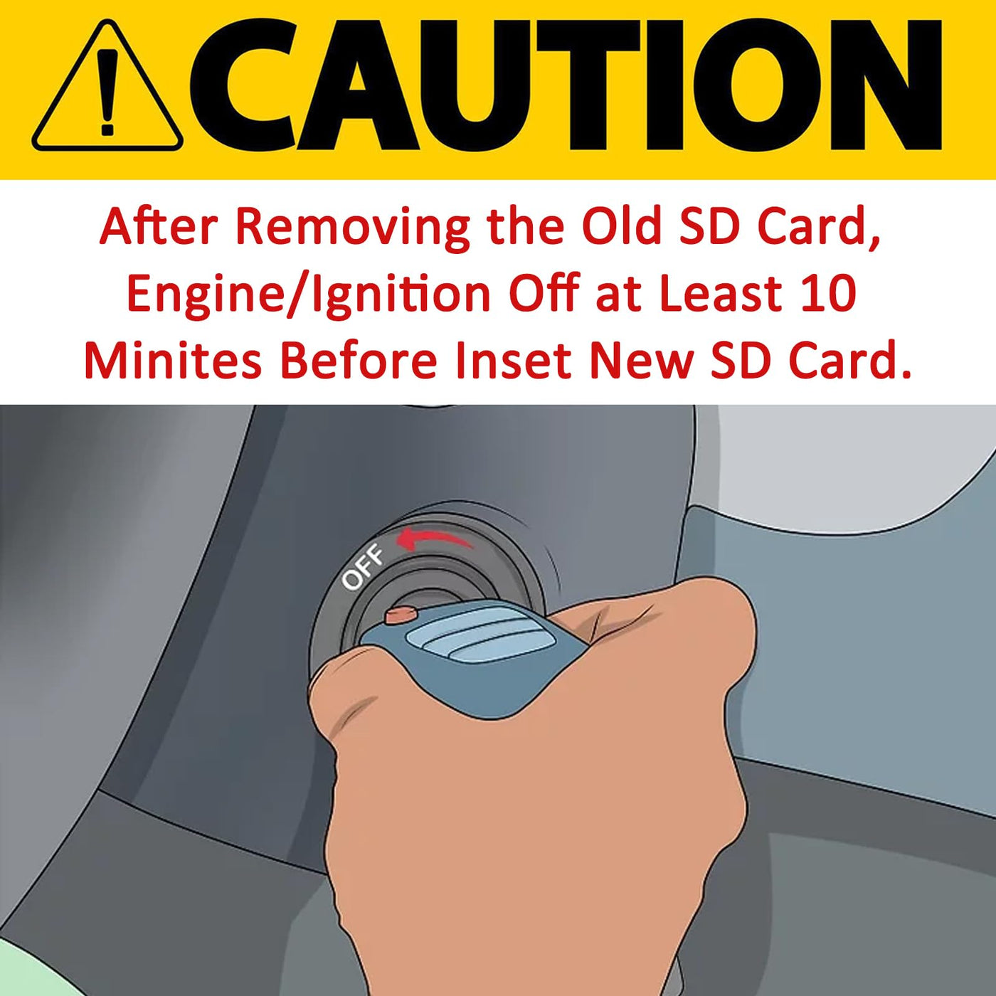 Q: How do I install the navigation SD card in my Toyota?A: To install the navigation SD card, ensure your vehicle's ignition is OFF for at least 20 minutes before inserting the new SD card. Once the card is inserted, turn ON your car, and it will update automatically. Do not turn off the engine until the update is complete.