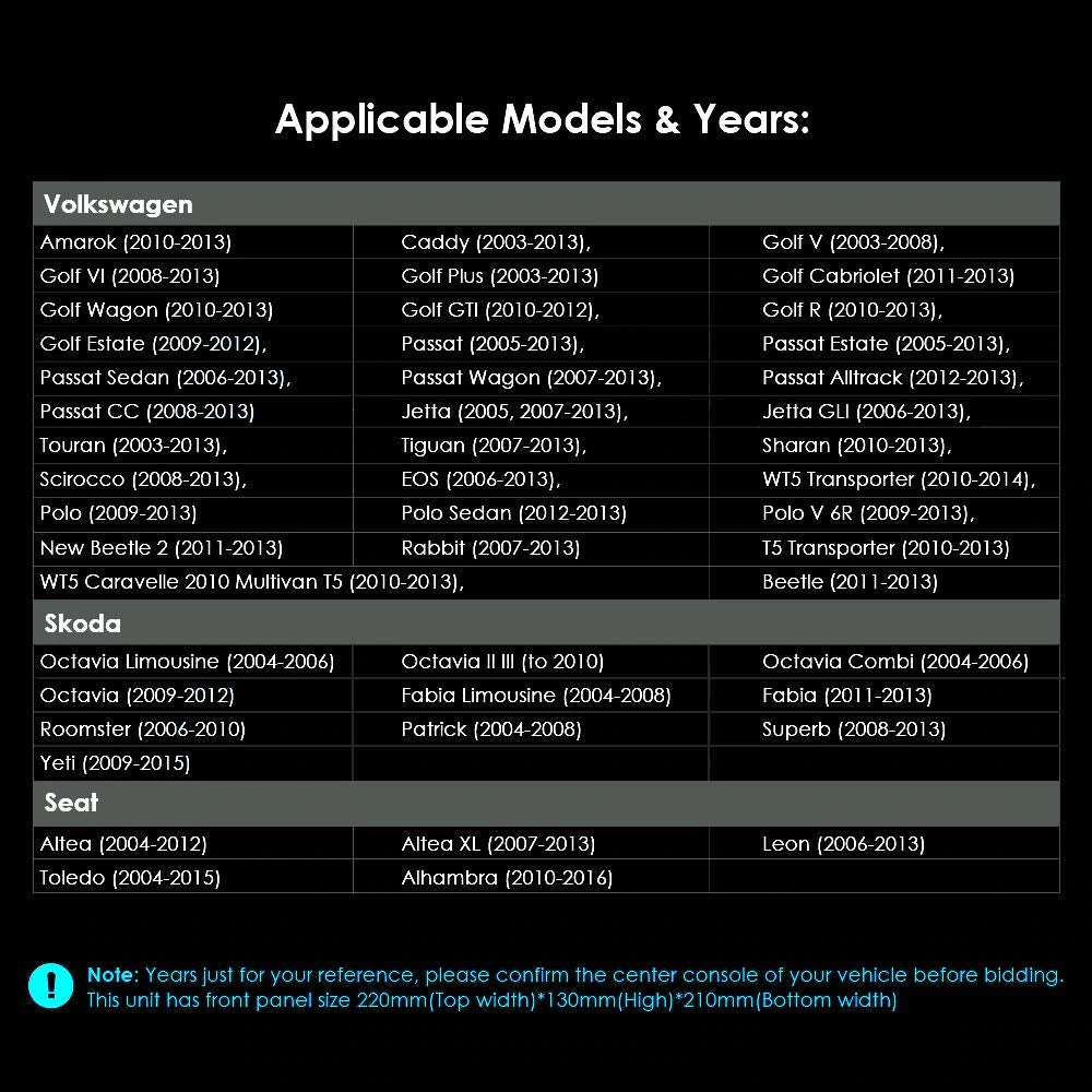 Q: What vehicles is the Podofo Car Stereo GPS Navigation Head Unit compatible with?A: The Podofo Car Stereo GPS Navigation Head Unit is designed specifically for VW models, including Skoda Octavia, Golf, Touran, Passat B6, Jetta, Polo, and Tiguan. For cars produced in 2014-2017, it's recommended to confirm compatibility with your specific vehicle model to ensure correct connector and canbus integration.