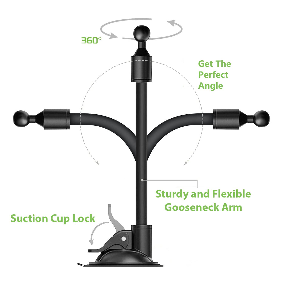 Q: How does the flexible arm benefit users of the suction mount?A: The flexible arm allows for adjustable positioning of your GPS device, making it easier to reach and view while driving, enhancing convenience and safety during navigation.
