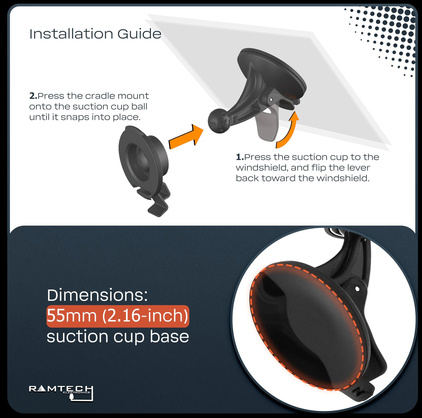 Ramtech Car Windshield Suction Cup Gps Mount With Bracket, Compatible With Drive 50 50Lm 50Lmt, 51 Lm 51 Lmt S, 52 Gps, Scr