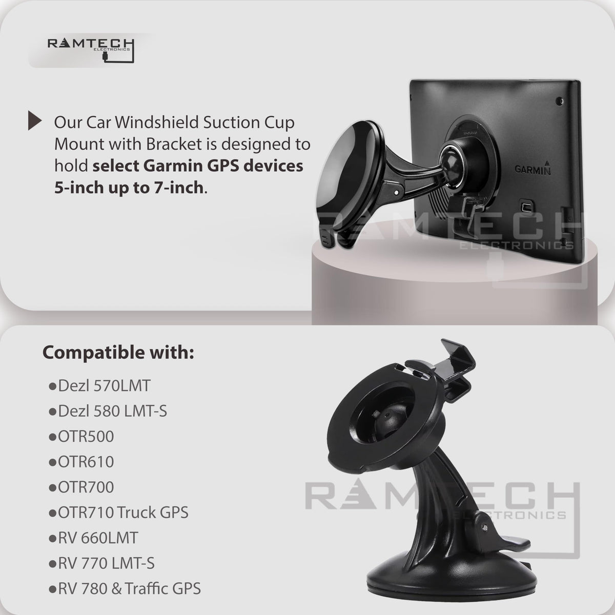 Ramtech Car Windshield Suction Cup Gps Mount With Bracket, Compatible With Garmin Dezl 570Lmt 580 Lmt S, Otr500, Otr610, Otr620, 0Tr700, Otr710, Otr720 Truck Gps, Rv 660Lmt, Rv 770 Lmt S, Rv 780, Scr