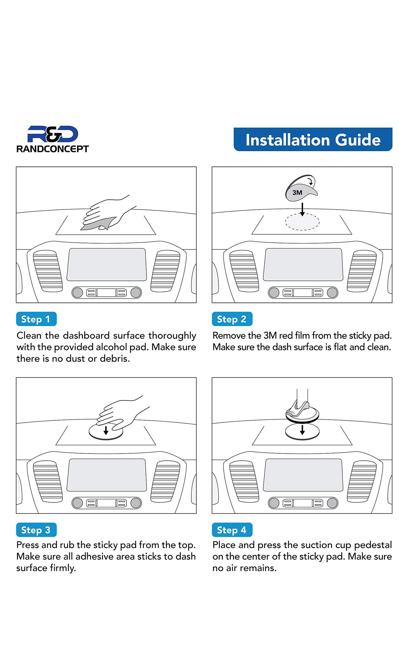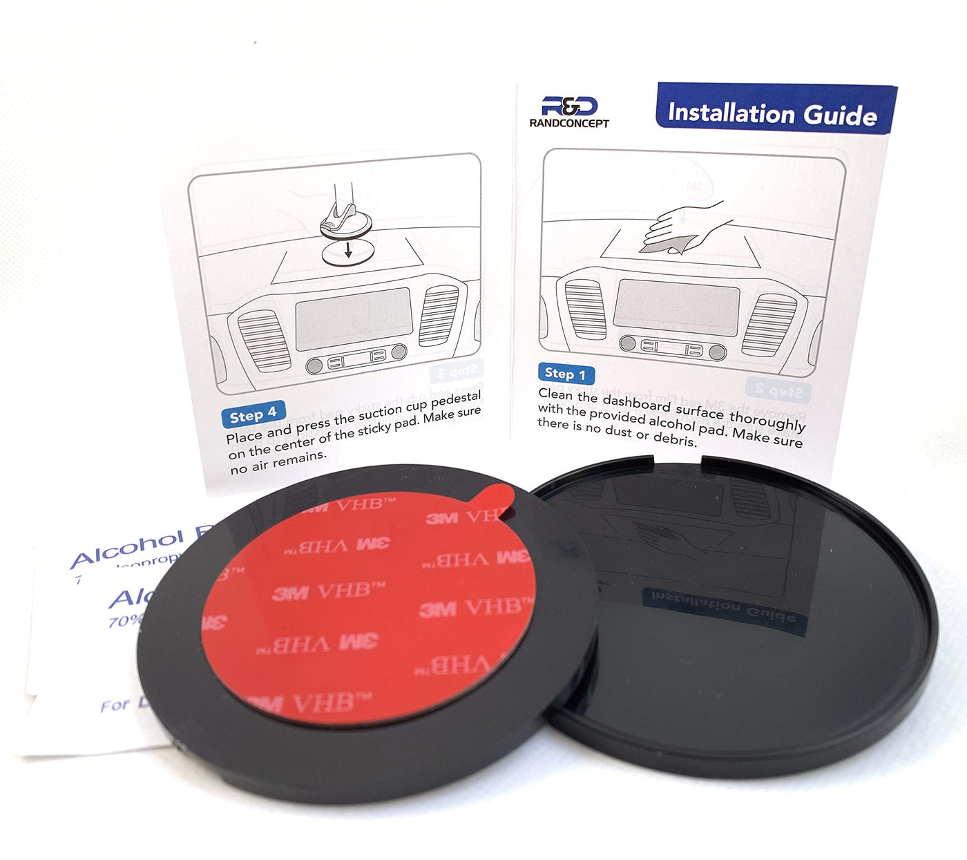 Making Driving Safer &Amp; More Convenient With Randconcept Sticky Pads Randconcept Dashboard Pad Sticks To Dashboard With High Quality Sticky Gel To Get Your Car Phone Mount Suitable For More Smooth Or Even Textured Surfaces, Since It Will Help Change The Mounting Surface To The Completely Flat Surface Where The Suction Cup Of Mount Would Have The Best Performance. Installation: 1) Clean The Dashboard; 2) Remove The Protective Cover On The Base Of The Disk; 3) Press The Disk To The Dashboard And Leave More Than 30 Seconds; 4) Attach Suction Mount On The Disc. Features You&Rsquo;Ll Love: ? Your Phone Holder Or Garmin Gps Mount Will Firmly Attached To Car Dashboard No Matter How Many Bumps You Hit ? Now You Can Change Your Suction Cup To New Location With Our Sticky Disc, Even From Windshield To Dashboard. ? Enjoy Stafety Driving Without Dropping Suction Phone Holder Or Gps Mount Again!&Nbsp; Package Includes: ? Cleaning Pad X2 ? Installation Guide X1 ?&Nbsp;3M Adhesive&Nbsp;Sticky Plate X2 Note: Please Note That Each Pad Is One-Time Use Only. Once Removed, It May Not Be Reapplied. Please Clean The Your Suction Cup With Running Water And Let It Air Dry Before Attach To The Sticky Plate Surface. Click On The Add To Cart Button Now To Order Today And Make Traveling Safer And Easier With Randconcept Sticky Pads