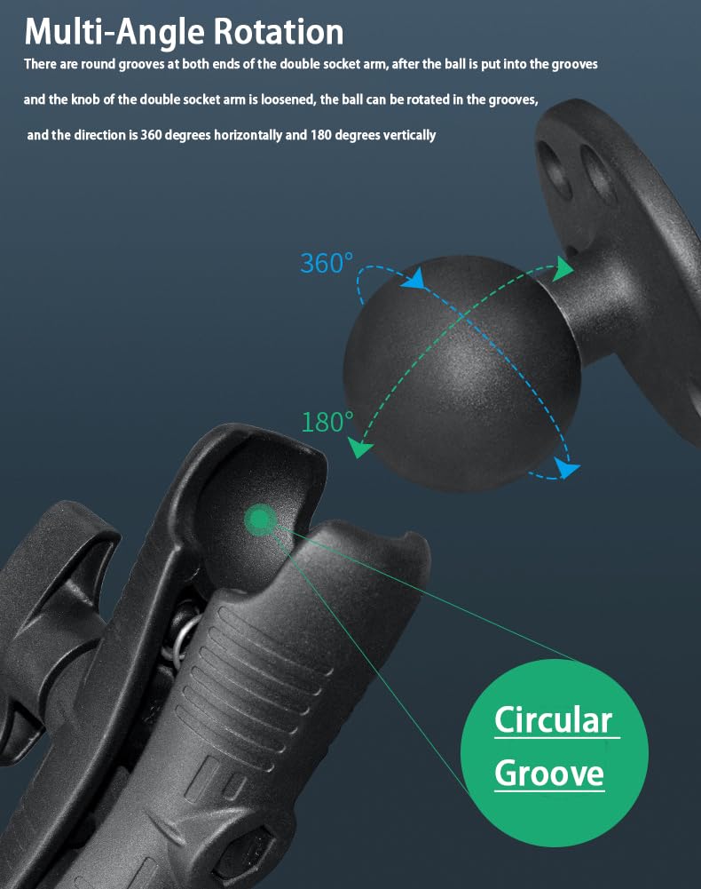 Strg 2.25'' Ball Mount With Amps Round Plate, Ball Mount Base Compatible With Ram And 2.25' D Size Double Socket Arm From Arkon, Ibolt And Tackform Enterprise Series