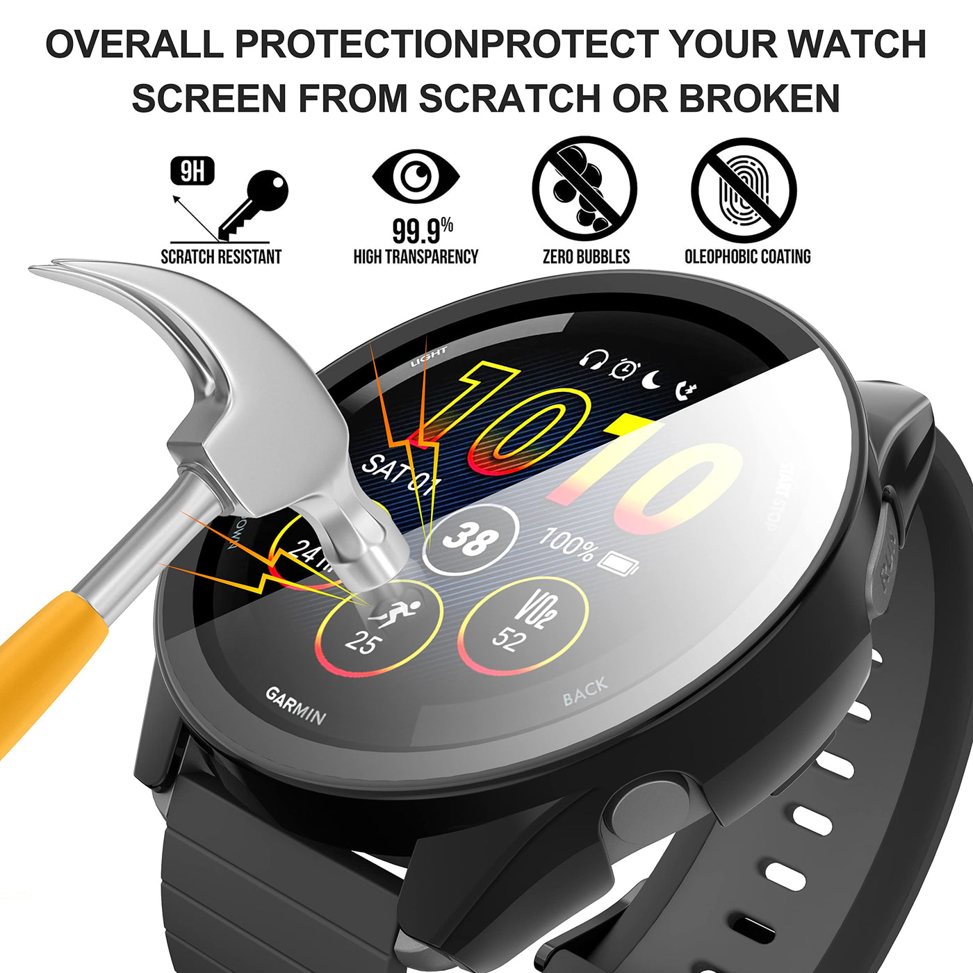 Suoman For Garmin Forerunner 265 Screen Protector Case, Ultra Thin Tempered Glass Full Coverage Case Cover For Garmin Forerunner