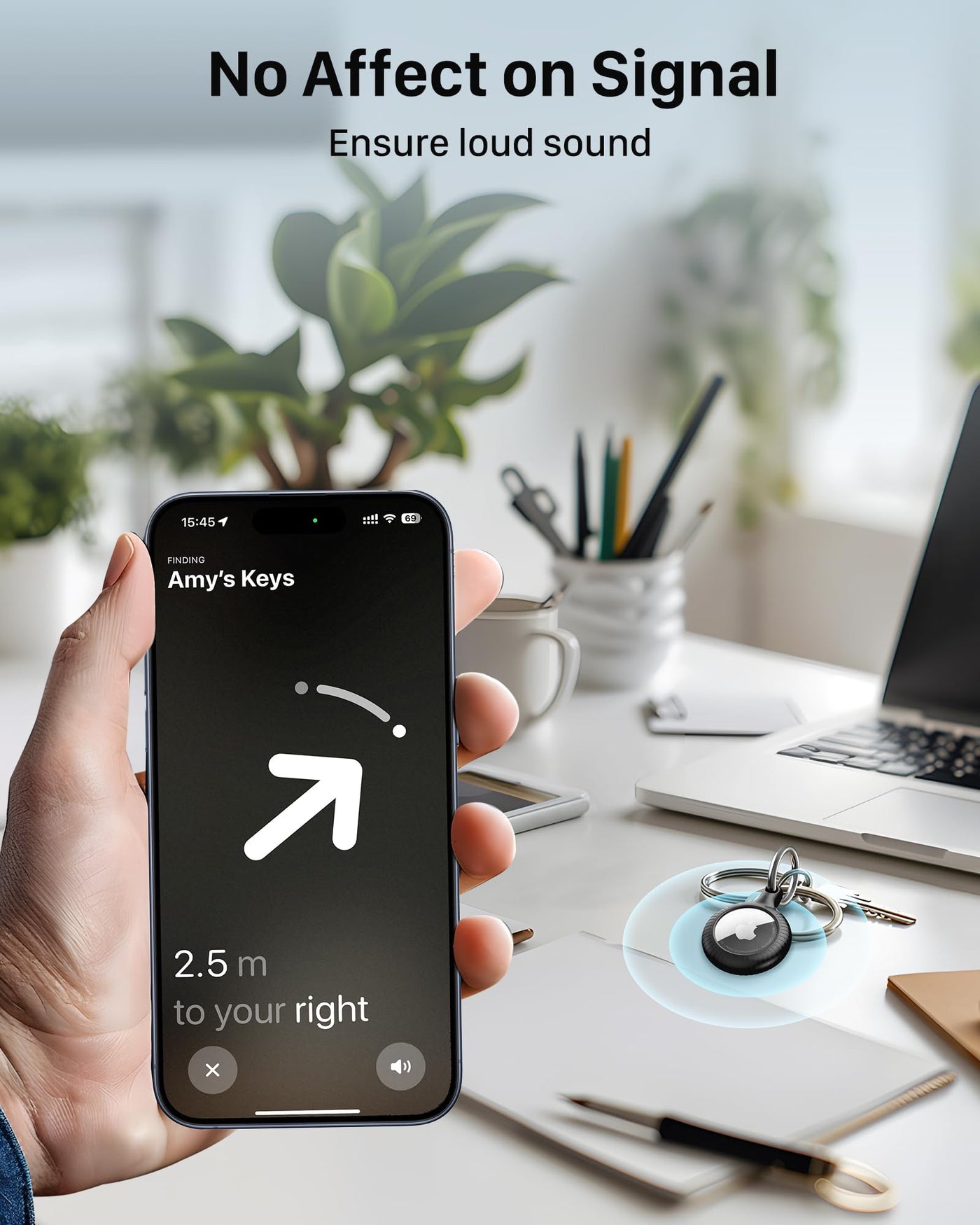 Q: Will the Airtag Holder interfere with the Bluetooth signal?A: No, the YOSH Airtag Holder is designed to allow uninterrupted Bluetooth signals and sound playback, ensuring seamless use with Apple's Find My app.