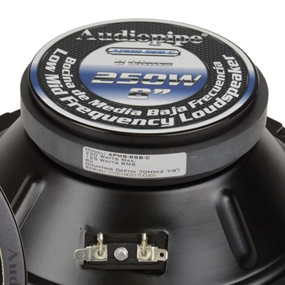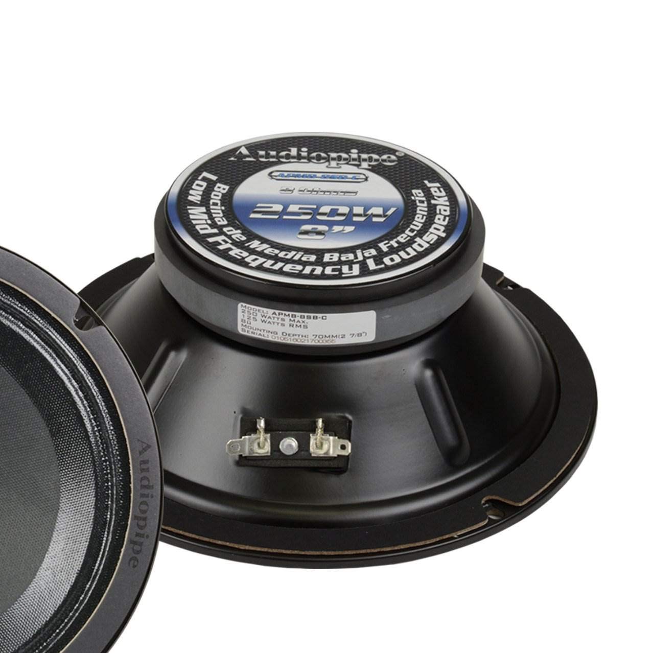 2Pairs Speakers -4 Pcsspeaker Size 8'Power (Max) 250 Wattspower (Rms) 125 Wattsfrequency Response 350-5000Hzsensitivity 99 Dbvoice Coil 1.5'Mounting Depth 70Mm (2.76')Impedance 8 Ohmsmagnet 20 Ozsealed Back Design - Controls Speaker'S Cone Movement For Excellent Midrange Sound With Almost No Adjustments Neededplease Contact Us For Shipping Outside Continental Usa (Alaska, Hawaii, Puerto Rico, Virgin Islands, Pacific Territories)*** Apmb-8Sb-C Replaces Apmb-8Sb-B ***