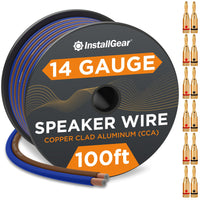 Installgear 14 Gauge Speaker Wire Cable With 12 Banana Plugs (100 Feet), 14 Awg Speaker Wire Cable Great For Car Speaker Wire 14 Gauge Car Speaker Stereos, Home Theater Speakers, Car Audio Wiring Kit