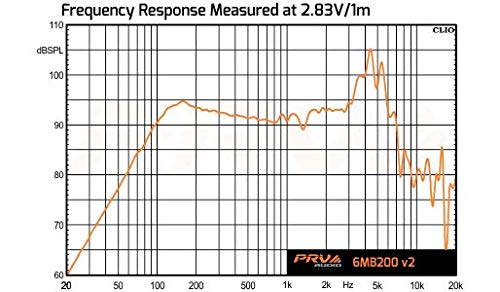 The Prv Pro Audio Loudspeaker, 6Mb200 V2 Mid Bass Woofer, Offers Outstanding Durability And A Smooth Punch Of Mid Bass For Small Enclosures. This Woofer Is Perfect For Home Hi-Fi Installs, Including Bookshelf, Satellite, Surround Sound Speakers And Even Home Studio Monitors.The 6Mb200-V2 Now Has More Extended Mid Range Response, Up To 6.5 Khz Compared To Its Previous Model, And Is A Perfect Option For Mid Range Driver Replacements In Three-Way Cabinets. The Magnet And Motor Assembly Are Attached To A Sturdy Reinforced Steel Frame, Ensuring A Solid Support Structure And Long Lasting Play In Most Any Environment. Its Light Weight Of Only 3.3 Lbs Helps To Keep Your Enclosures Light, Making It Perfect For Car Audio Applications.General Specificationsnominal Diameter: 6 Inch (152 Mm)Nominal Impedance: 8 Ohmsrated Aes Power Handling (Rms): 100 Wattsprogram Power: 200 Wattssensitivity 2.83V At 1M: 93.5 Dbrecommended Hi Pass Crossover*: 125 Hz***For Full Power Handling**12Db Per Octave Crossoverfrequency Response At -10Db: 125 � 6,500 Hzvoice Coil Diameter: 1.5' (38 Mm)Voice Coil Wire: Coppervoice Coil Winding Depth: 12.5 Mmformer Material: Kaptonmagnetic Gap Depth: 5.8 Mmframe Material: Stamped Steelextra Infooverall Diameter: 6.53' (166 Mm)Front Mount Baffle Cutout: 5.63' (143 Mm)Mounting Depth: 2.6' (66 Mm)Overall Depth: 2.91' (74 Mm)Net Weight: 3.30 Lbs (1.50 Kg)Shipping Weight: 3.62 Lbs (1.64 Kg)Carton Dimensions W X L X H: 7.17' X 7.17'X 4.13' (182 X 182 X 105 Mm)