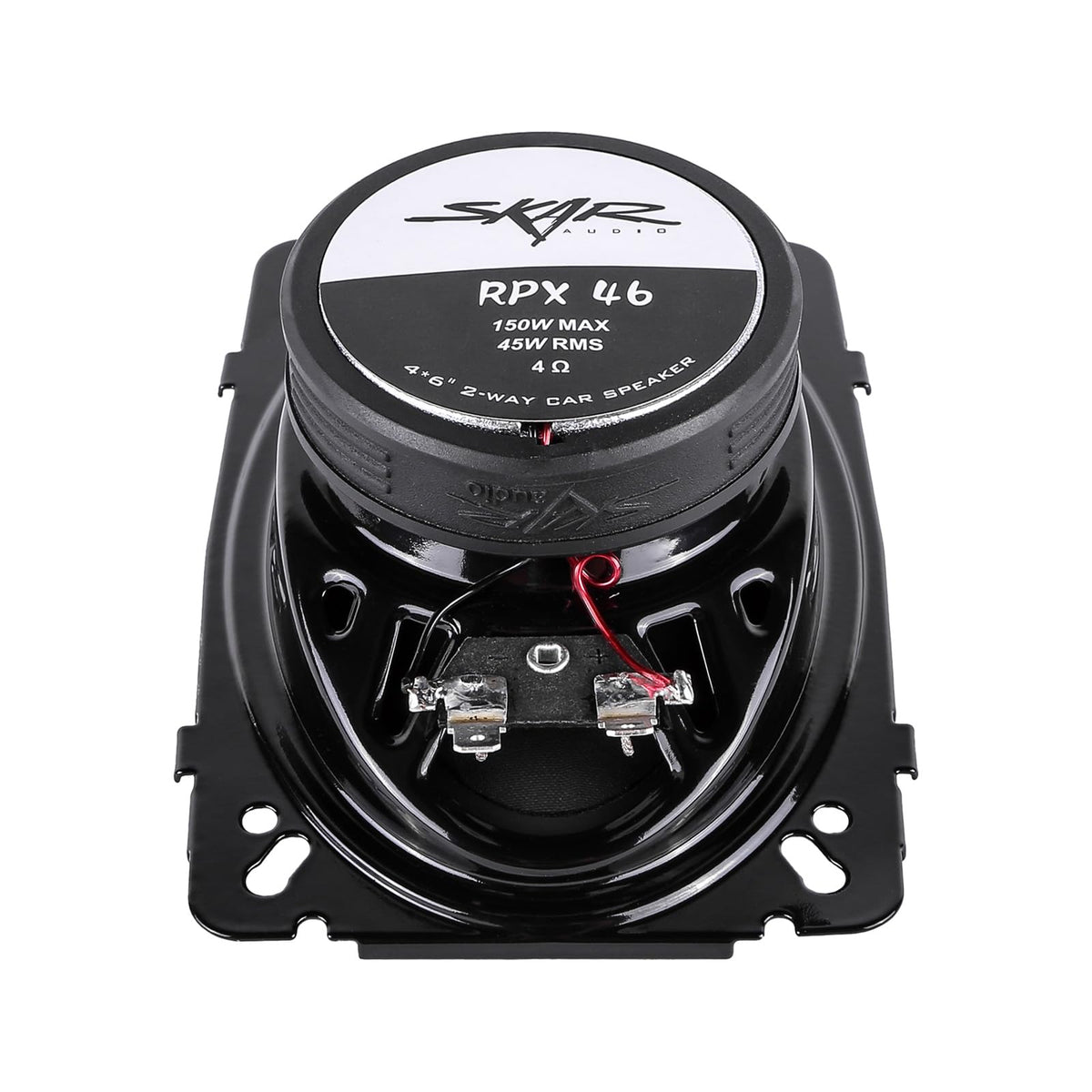 The Rpx46 - 4-Inch By 6-Inch 2-Way Coaxial Car Speakers Are Great Factory Replacement Speakers, Providing Rich, Clear, And Powerful Sound. They Work Great On Factory Radio Power Or Amplified Power, And Feature High Quality Build Materials Such As A Microfiber Paper Cone And Premium Butyl Rubber Surround. All Of These Aspects Of The Speakers Design Allow It To Offer Great Sound And Long Lasting Reliability. The Speakers Feature A 20Mm Premium Silk Dome Tweeter. Frequency Response: 40-20,000 Hz. Sensitivity: 91 Db. Sold As A Pair. Impedance: 4 Ohms. Max Power: 150 Watts (Pair), Rms Power: 45 Watts (Pair).