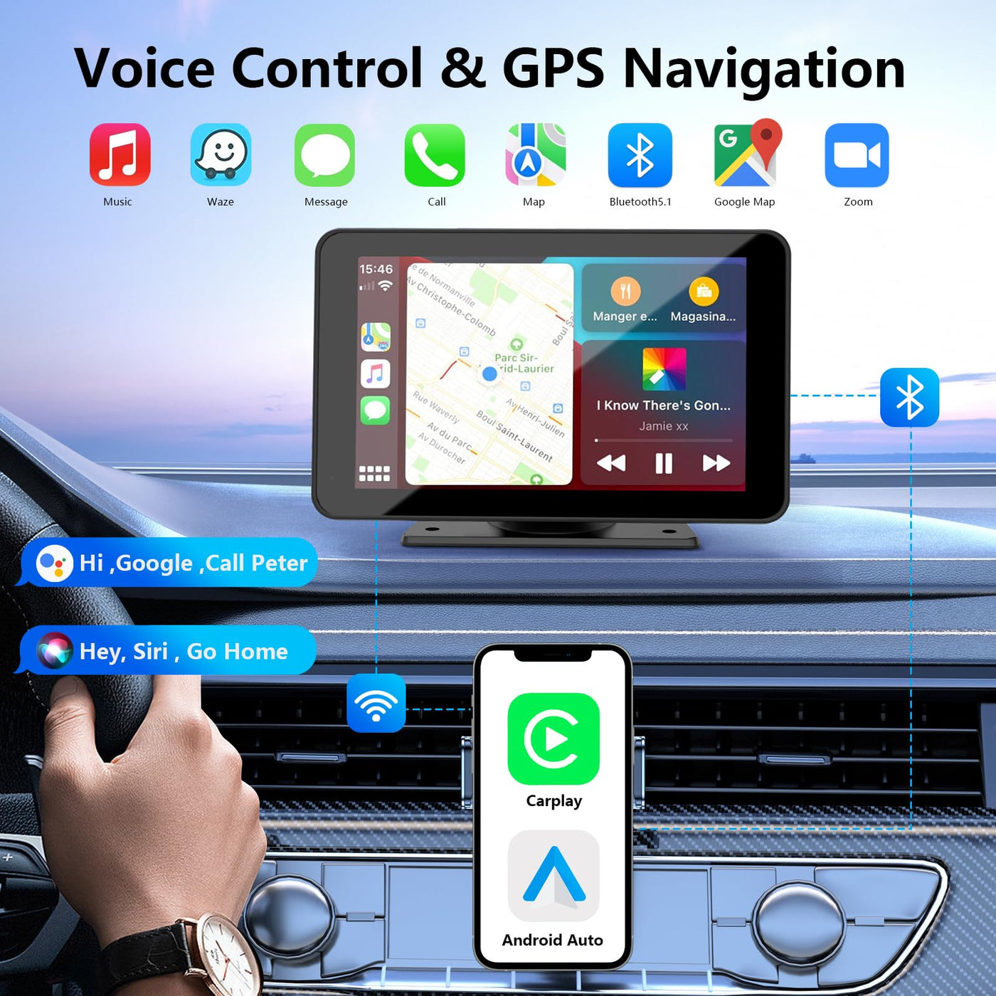 Apple Carplay Screen For Car, 7'' Hd Portable Car Stereo Touch Screen With Wireless Android Auto, Backup Camera, Car Audio Recei