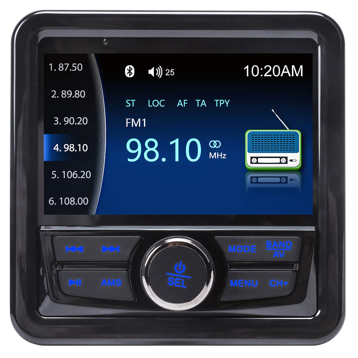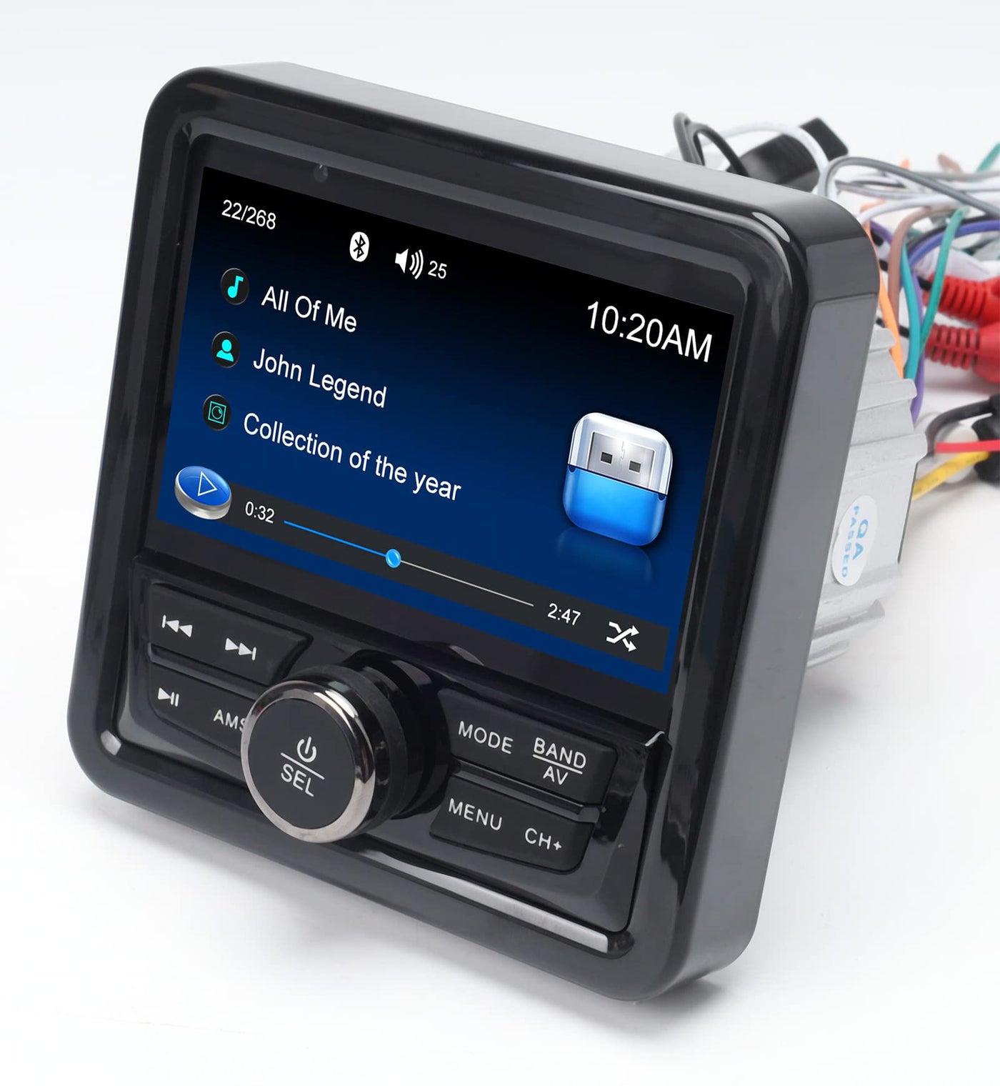 Audio Systems Marine Gauge Receiver Weatherproof, 4 Inch Display Screen, Built In Amplifier, Bluetooth, Digital Media Mp3 Play