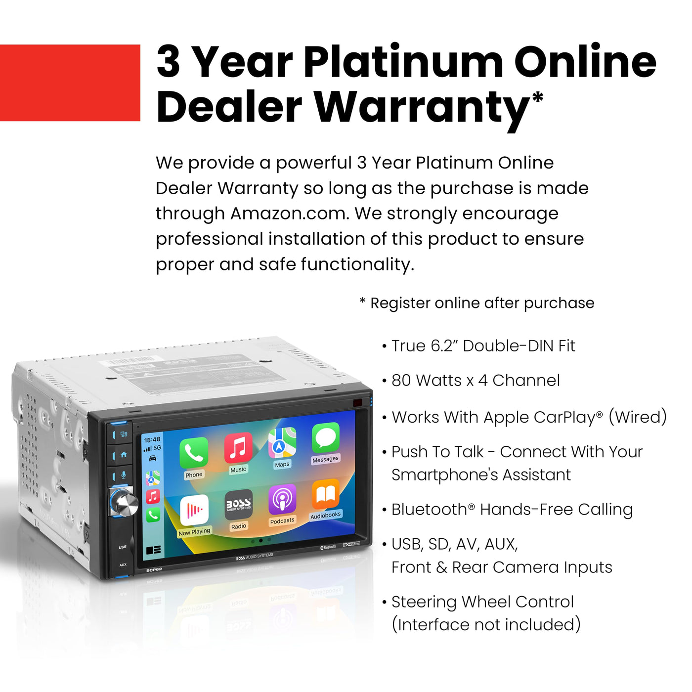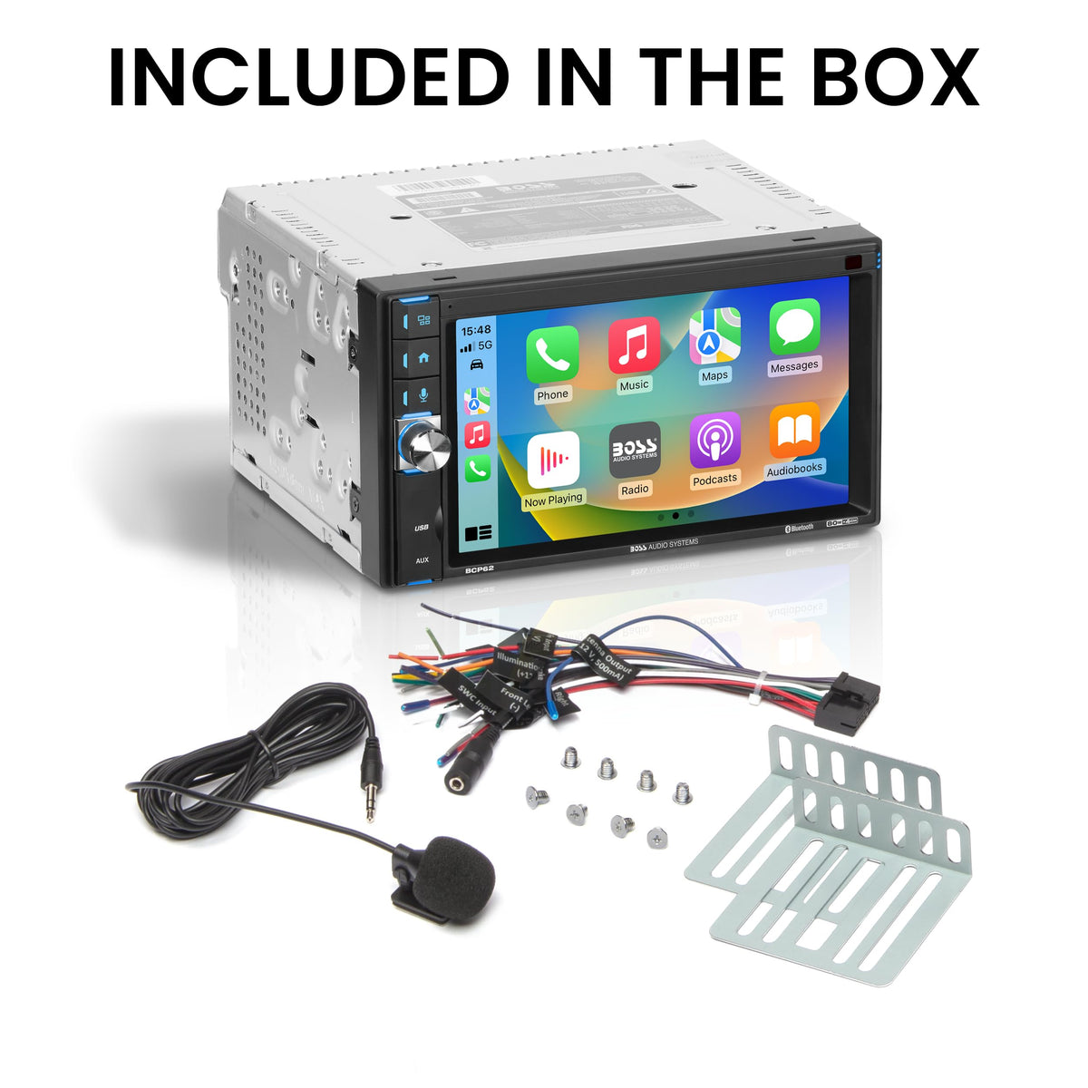 Boss Audio Systems Bcp62 Car Stereo - Apple Carplay, Double Din, 6.2 Inch Capacitive Touchscreen, Bluetooth, No Cd Dvd Player, Am/Fm Radio Receiver, Usb