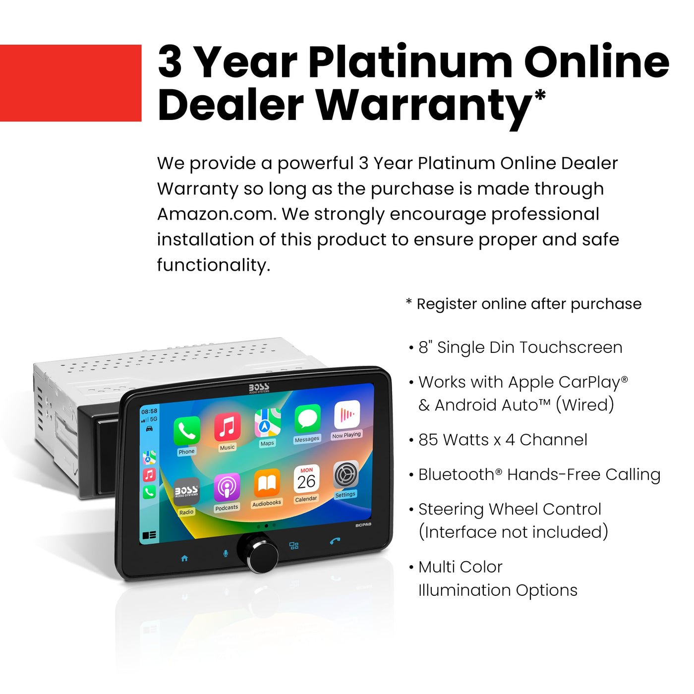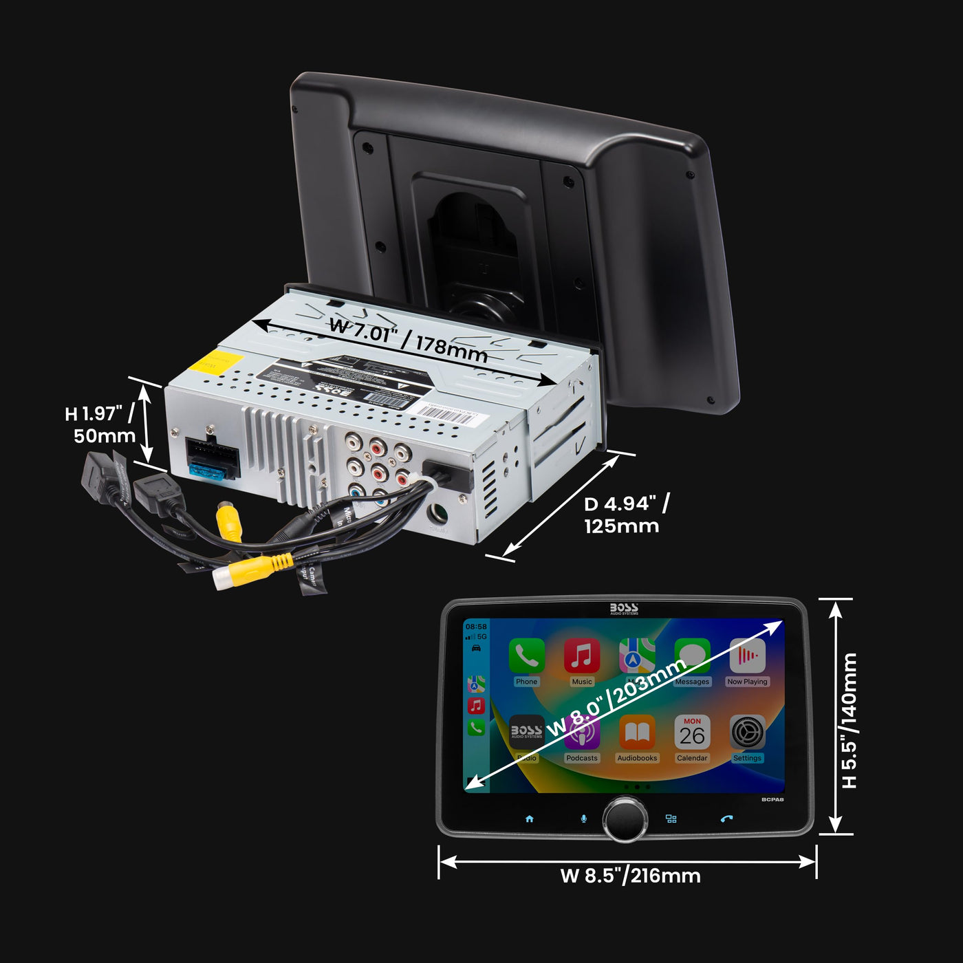 Boss Audio Systems Bcpa8 Car Audio Stereo System - Apple Carplay, Android Auto, 8 Inch Single Din Touchscreen, Bluetooth Head Unit, No Cd Player, Radio Receiver, Hook Up To Amplifier