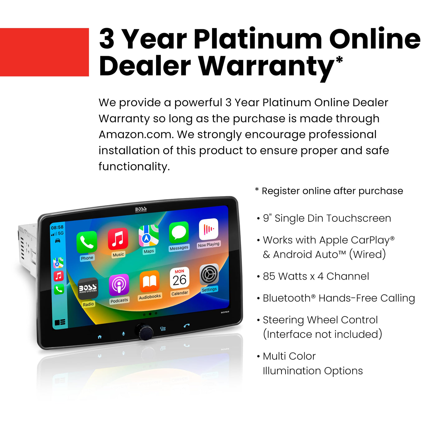 Boss Audio Systems Elite Series Bcpa9 Car Stereo System - Apple Carplay, Android Auto, 9 Inch Single Din, Bluetooth Head Unit, No Cd Player, Touchscreen, Radio Receiver