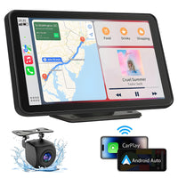 7 Inch Portable Wireless Car Play Screen Wireless Apple Carplay / Android Auto / Mirror Link 1. Portable And Convenient, Drive Play For Cars: Install It Within 3 Minutes And You Will Have Dash Carplay And Android Auto In Your Car. 2. Wireless Carplay Screen For Car: Wireless Apple Carplay / Android Auto Are All We Want; Say Goodbye To Messy Cables. 3. Touch Screen Car Stereo Smart Display: Display Is Bright And Easy To Read With Day/Night Mode Available. 4. Dashboard Mount Included: You Can Adjust The Angle Of The Mount For Better View. 5. Backup Camera For Car: Carplay Screen For Car With Backup Camera. 6. Gps Navigator For Cars: It Allows You To Use Apple Maps/Waze/Google Maps For Directions, Spotify And Others For Music, And Siri For Answering Phone Calls, Listen To Audiobooks, Etc... 7. If You Don'T Want To Tear Your Dash Up To Install A Car Audio System Or If There Is No Car Infotainment System That Matches Your Car, This Car Navigation Stereo Is The Best Choice For You. It Is A Great Solution For Those Who Don'T Have Apple Carplay In Their Older Vehicles. It Can Increase Its Drivability. Specs : 1. Suitable Voltage: 12-24V 2. Screen Size: 7Inch 3. Screen Resolution: 1024*600