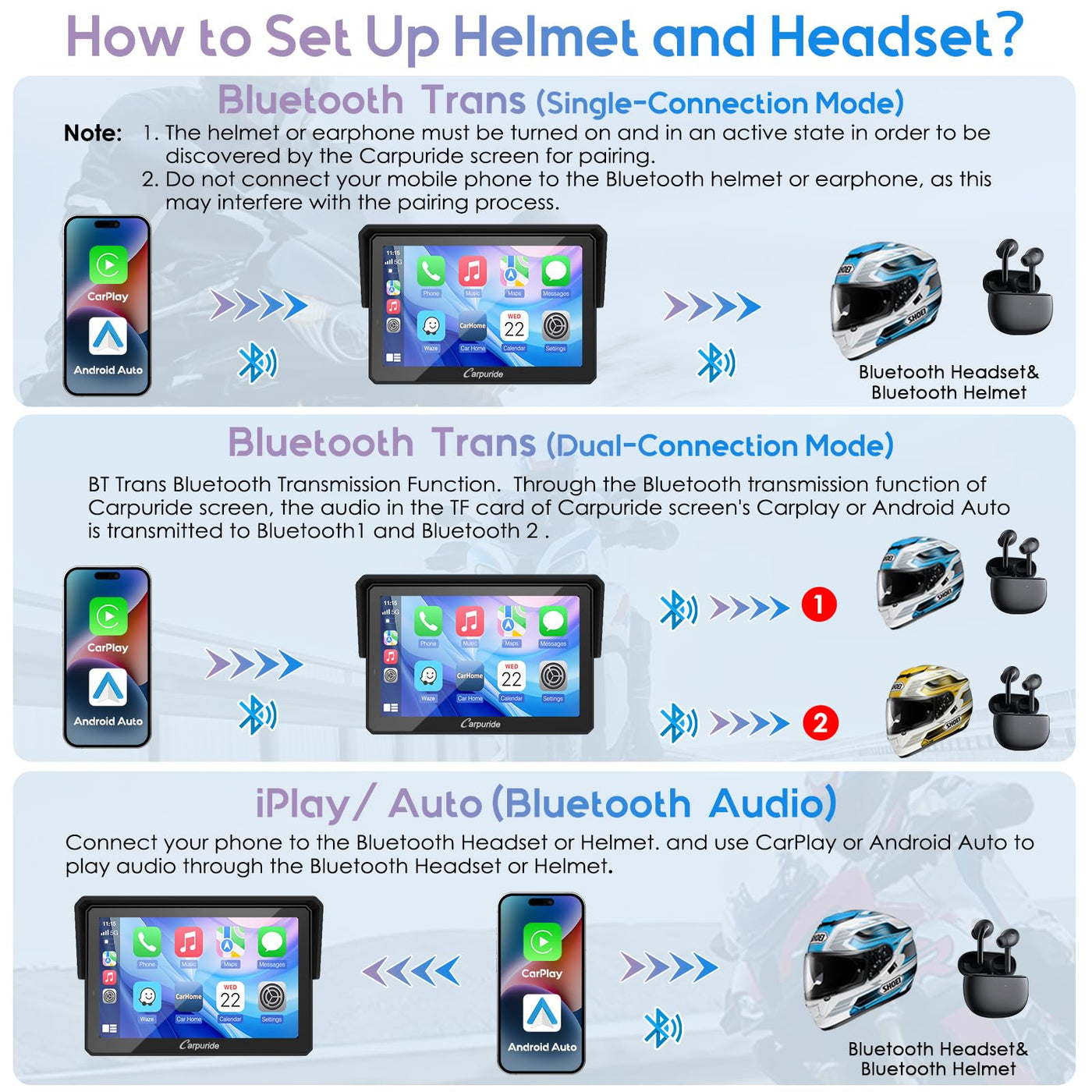 Carpuride W502B Pro For B.M W Motorcycle Carplay & Android Auto & Dual Bluetooth, 5'' Waterproof Gps Navigation Screen For Motor