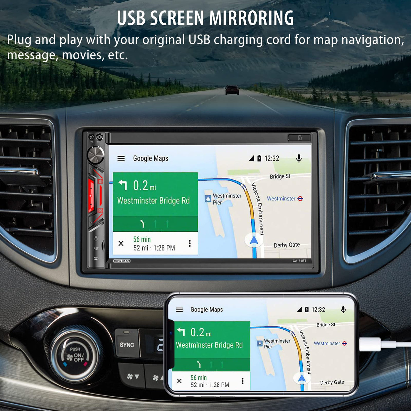 Soundkits Car Audio In-Dash Double Din Mechless Digital Media Stereo Receiver Enjoy A More Safe And Convenient Driving Experience With Highly Responsive 7-Inch Hd Capacitive Touchscreen Monitor, A User-Friendly Interface And Smart Multi-Functions. Mirroring To Your Smartphone For Gps Navigating To The Places You Want To Go. Bluetooth Technology Lets You Stream Music And Make/Answer Hands-Free Calls. Reach To Your Favorite Playlists By Hooking Your Smartphone Or Mp3 Player With Aux Input. Making Sure Your Parking Is Easy And Safe With The Hd Backup Camera. Choosing Your Favorate Sound Style With The Built-In Preset Eq. Charging Your Usb Powered Devices Through The Usb Ports. Listening To The Am/Fm Radio Or Playing 1080P Video With Usb Storage Or Microsd During Long Journey. Easier Installation And Better Fit In Standard Double-Din Stereo Openings. Install Kit May Be Required Depending On The Year And Make Of Your Vehicle. Steering Wheel Controls & Ir Remote Control. Left & Right Pre-Amp & Subwoofer Outputs Different 7 Color Led Buttons. Switchable Us And European Tuner Mechless No Cd Or Dvd Player 50 Watts X 4 Max Power Dc 12V Working Voltage