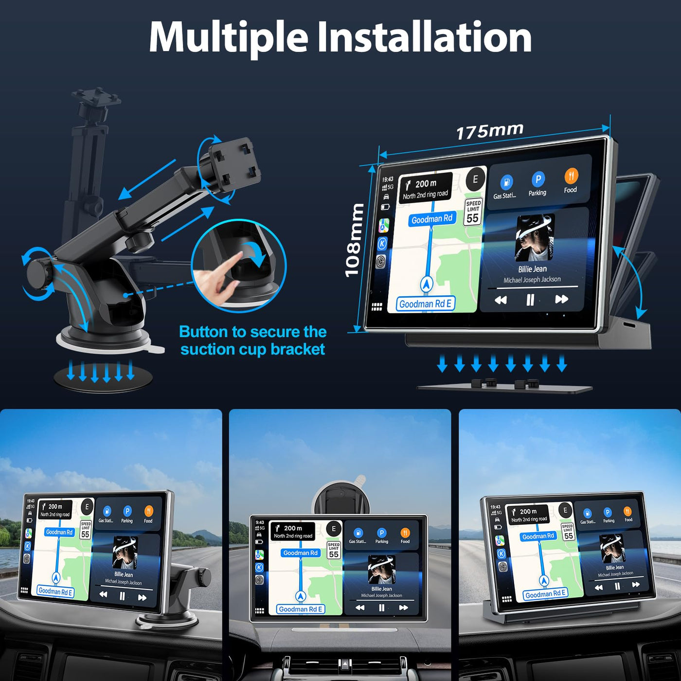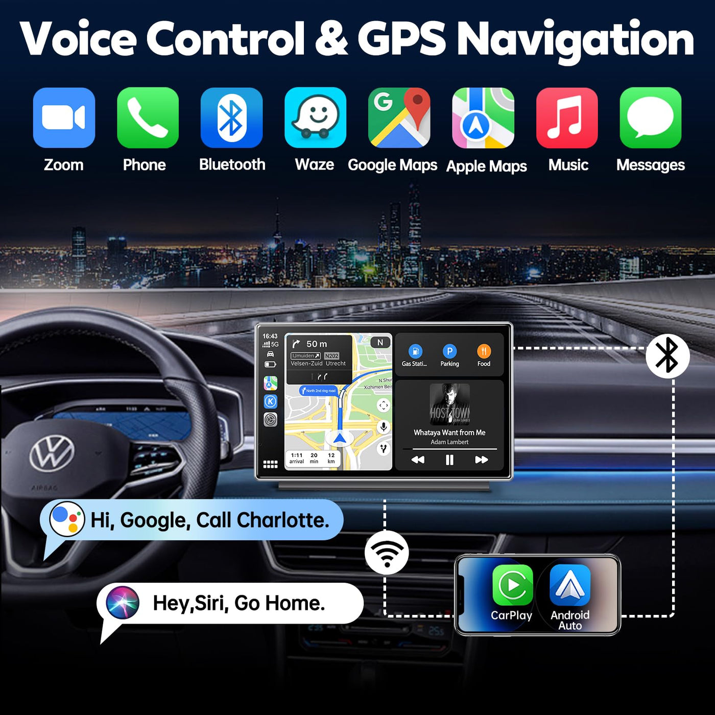Eoyaa Upgrade Wireless Carplay Screen, Android Auto, Portable 7'' Hd Ips Screen For Car, Gps Navigation, Bluetooth Handsfree, Ai