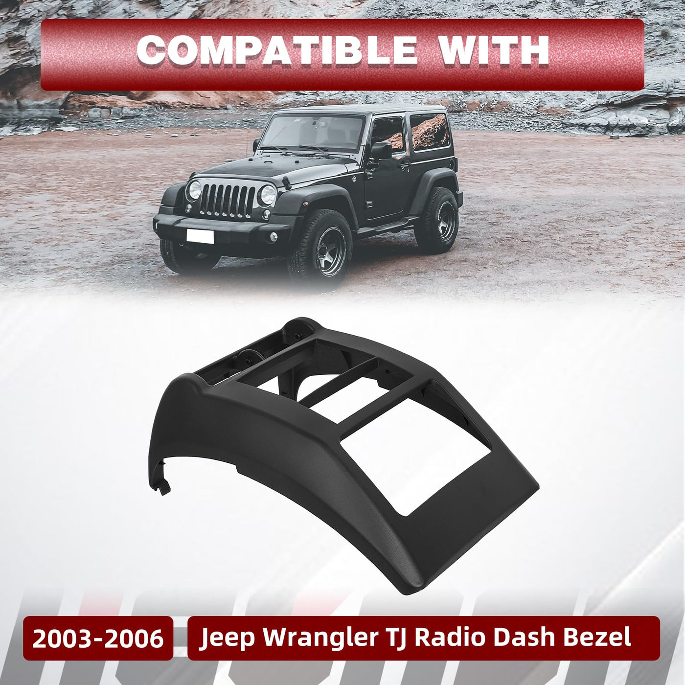 Hecasa Double Din Kit W/ Wiring Harness Compatible With 2003-2006 Jeep Wrangler Tj Radio Dash Bezel Fitment- Double Din Radio Dash Bezel Kit W/ Wiring Harness Compatible With 2003-2006 Jeep Wrangler Tj.Specification- Condition: New. Material: Plastic| Color: Black Painted| Surface Finish: Painted| Installation Instructions Are Not Provided.Number Of Packages: 1.High Quality- Made Of High Quality Plastic. Professional Assembly Is Highly Recommended.Package Included- Dash Bezel, Mount Brackets, Antenna Adapter, Wiring Harness. Instruction Is Not Included.Note- Wire Harness Is Compatible With Standard Wiring Only.
