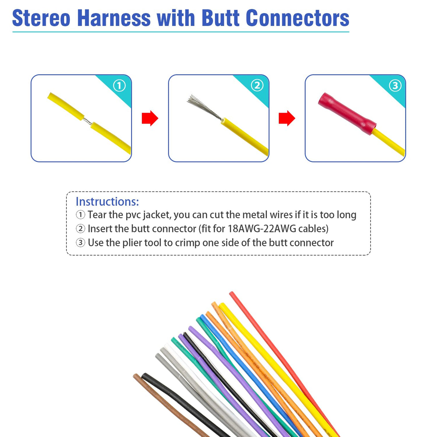 Product Package 1 X 20Pin Radio Wiring Harness 16 X Butt Connectors Car Radio Wire Harness Compatible With For Toyota Avalon 2000-Up For Toyota Corolla 2004-Up For Toyota Vios 2004-Up For Toyota Rav4 2004-Up For Toyota Camry 2004-Up For Toyota Yaris 2004-Up For Toyota Reiz 2004-Up For Toyota Prado 2004-Up For Toyota Prius 2004-Up For Toyota Highlander 2004-Up For Toyota Land Cruiser 2004-Up For Toyota Sienna 2004-Up For Toyota Chr 2004-Up For Toyota Sequoia 2004-Up For Toyota Tundra 2004-Up For Toyota Tacoma 2004-Up For Toyota 4Runner 2004-Up Warm Tips 1. These Car Model And Years Above Are Just For Your Reference, It Would Fit For Other Toyota Models If Your Car Connectors Are Same 2. This Harness Is Only Used For Toyota With Jbl System Connectors How To Use The Butt Connectors A. Tear The Pvc Jacket, You Can Cut The Wires If It Is Too Long B. Insert The Butt Connector, Use For 18Awg-22Awg Cables C. Use The Plier Tool To Crimp One Side Of The Butt Connector