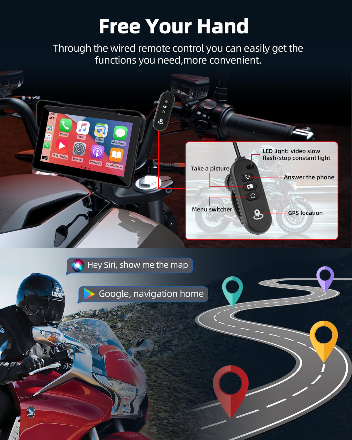 Motorcycle Carplay & Android Auto 7 Inch Motorcycle Dvr Wireless Carplay Screen For Moto With Dual 2K Cameras Gps Navigation For Motorbike, Remote Control, Voice Control, Bluetooth, Tf-64G