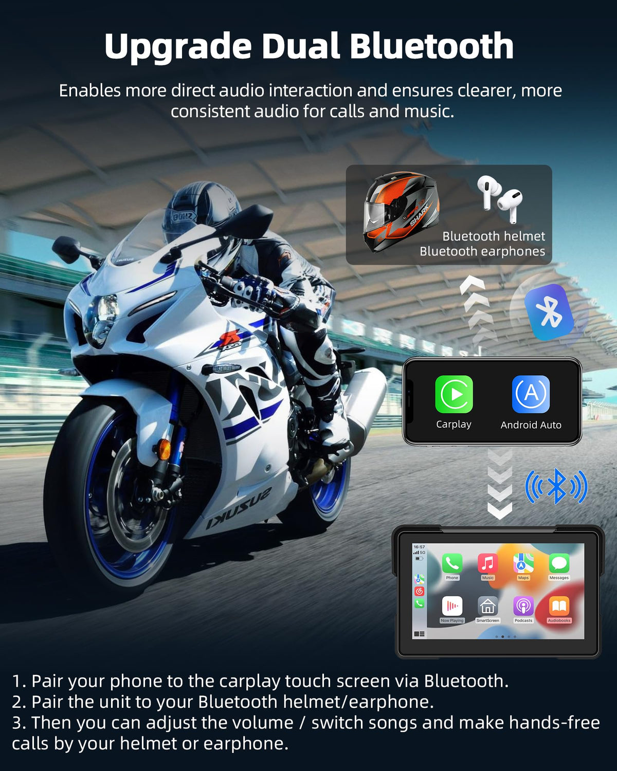Motorcycle Carplay & Android Auto 7 Inch Motorcycle Dvr Wireless Carplay Screen For Moto With Dual 2K Cameras Gps Navigation For