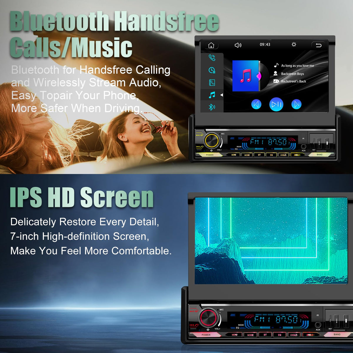 [Motorized] Y Metdriving 7 Inch Single Din Flip Out Touchscreen Car Stereo With Wired Apple Carplay & Android Auto,Screen Foldab