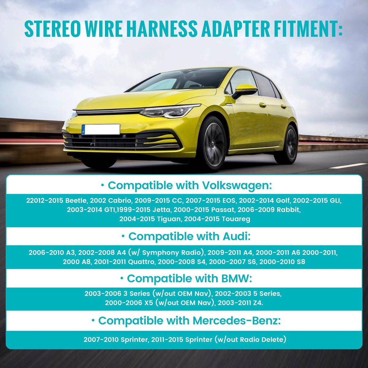 Nuith Car Stereo Radio Wire Harness Compatible With Audi/Bmw/Volkswagen 2002 2015 Vehicles Power/Speaker Adapter Allows Installa