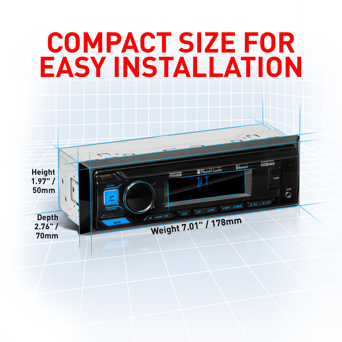 Q: Can I use the Planet Audio P350MB with my existing car audio system?A: Yes, the Planet Audio P350MB is designed as a single-DIN unit, making it a perfect fit for most car audio systems that accommodate single-DIN stereos. Ensure you have the necessary installation kit for your specific vehicle.