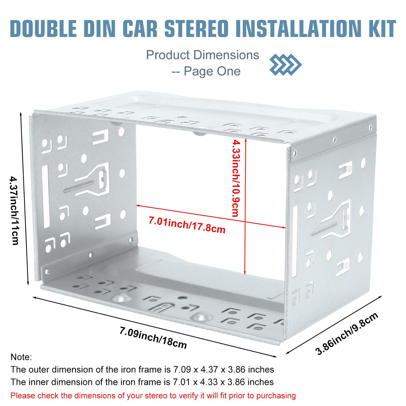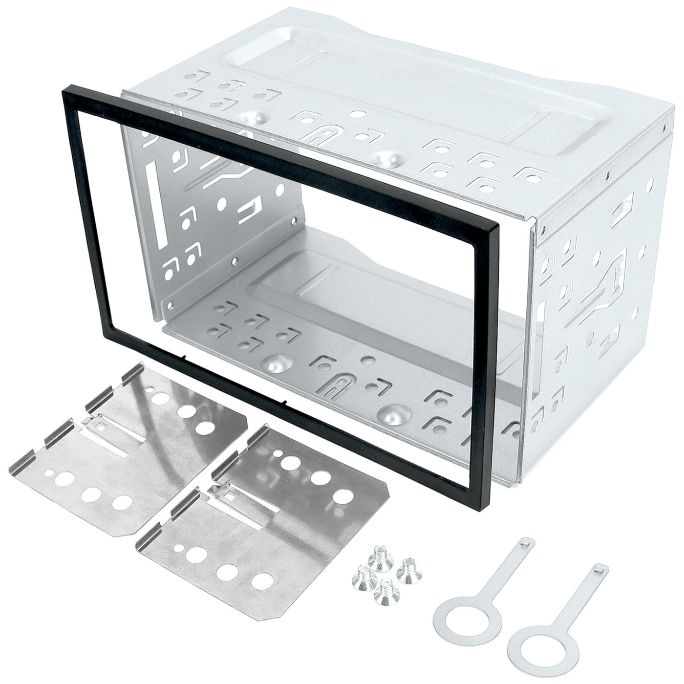Qlouni Double Din Installation Kit, Universal Double Din Installation Cage Kit Slot Metal Car Stereo Radio Mounting Frame, Compatible For Passat/Mk3/Jetta Panel Frame