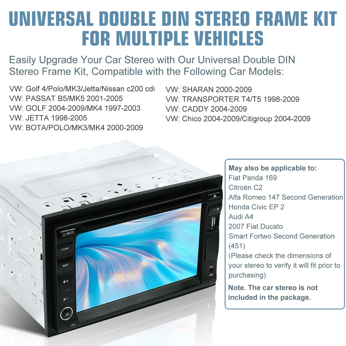 Installation Universal Fascia Frame For 2 Din Android Car Dvd Player Car Radio For Volkswagen/Golf/Polo/Mk3/Jetta Nissan Size Of The Iron Part: 185 X 115 X 100 Mm Size Of The Plastic Frame(Approx.): Outside 185 X 115Mm, Inside 180 X 100 Mm This Iron Installation Frame Set Is Suitable For Most Of 2Din Car Dvd Player, Especially For The Following Vw Series Cars. For Passat B5/Mmk5 2001-2005 For Jetta 1998-2005 For Bora/Polo/Mk3/Mk4 2000-2009 For Golf Mk4 1997-2003 For Citi 2004-2009 For Golf 2004-2009 For Chico 2004-2009 For Sharan 2000-2009 For Transporter T4/T5 1998-2009 Specifics: Type: Radio Panel Mounting Cage Frame Din Type: 2Din Suitable Vehicle Type: For Universal Placement: Dashboard Special Features: Radio Installation Material Type: Metal Color Type: Silver Package Includes: 1 X Plastic Baskets 1 X Iron Frame 2 X Mounting Bracket 2 X Stereo Release Keys 4 X Screw Note: Please Check Compare Its Dimensions, Shape In Case Of Wrong Buying Before Ordering This Item