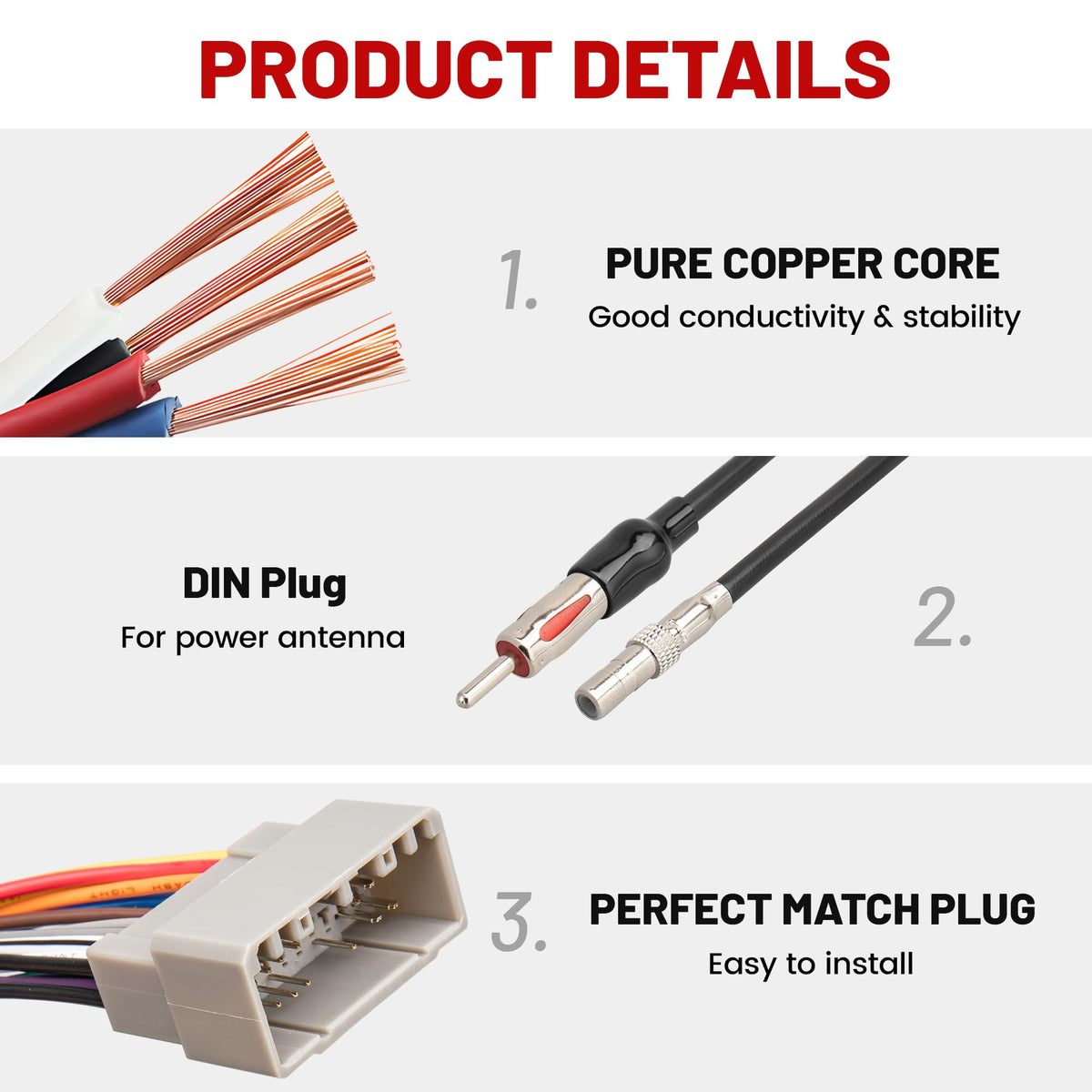 Red Wolf Aftermarket Radio Install Wire Harness W/Antenna Adapter Plug Replacement For Jeep 2003 2007,Dodge Ram 2002 2007, Chrysler 2000 2007
