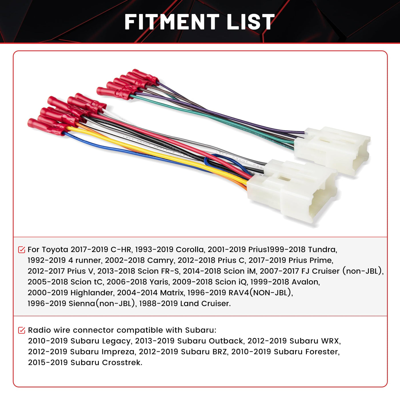 Red Wolf Car Radio Wiring Harness W/Pre Install Wire Connector Butt For 1992 2019 Toyota 4Runner Camry Rav4, 2014 2018 Scion Im Tc Iq Install Aftermarket Stereo Cable Cd Receiver Without Jbl System
