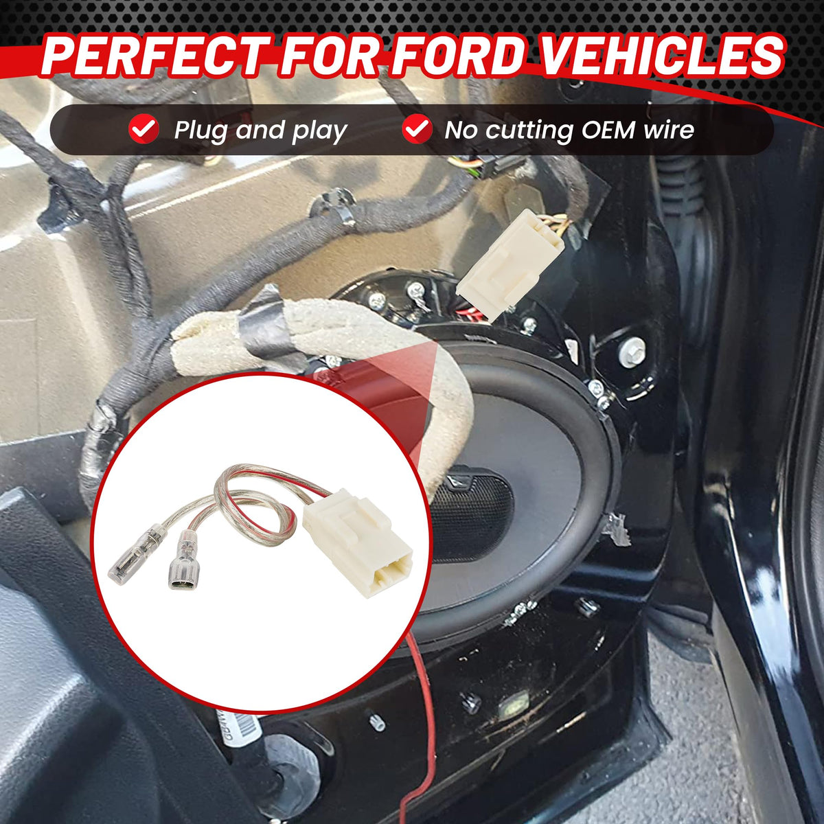 Q: Is the installation process straightforward for this wiring harness?A: Yes, the installation of the RED WOLF Door Speaker Wiring Harness is designed to be easy. It connects aftermarket speakers directly to the factory speaker harness without the need for cutting any OEM wiring.