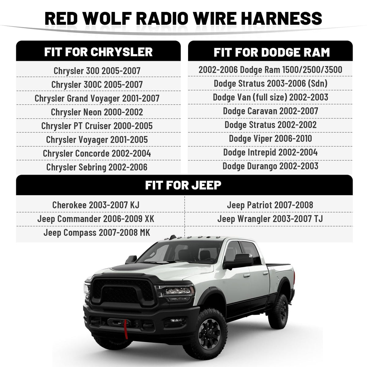 Red Wolf Radio Wire Harness Fit For Select 2002 2006 Dodge Ram Chrysler Jeep Power 4 Speakers, Radio Wiring Harness For Installing Aftermarket Car Stereo Connector Plug Non Factory Amplified