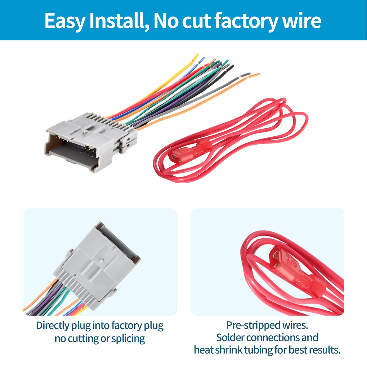 Q: Do I need to cut any wires when installing this harness?A: No, the RED WOLF Radio Wiring Harness features a plug-and-play design with a 24-pin and a 12-pin connector, allowing for easy installation without cutting any OEM wiring.