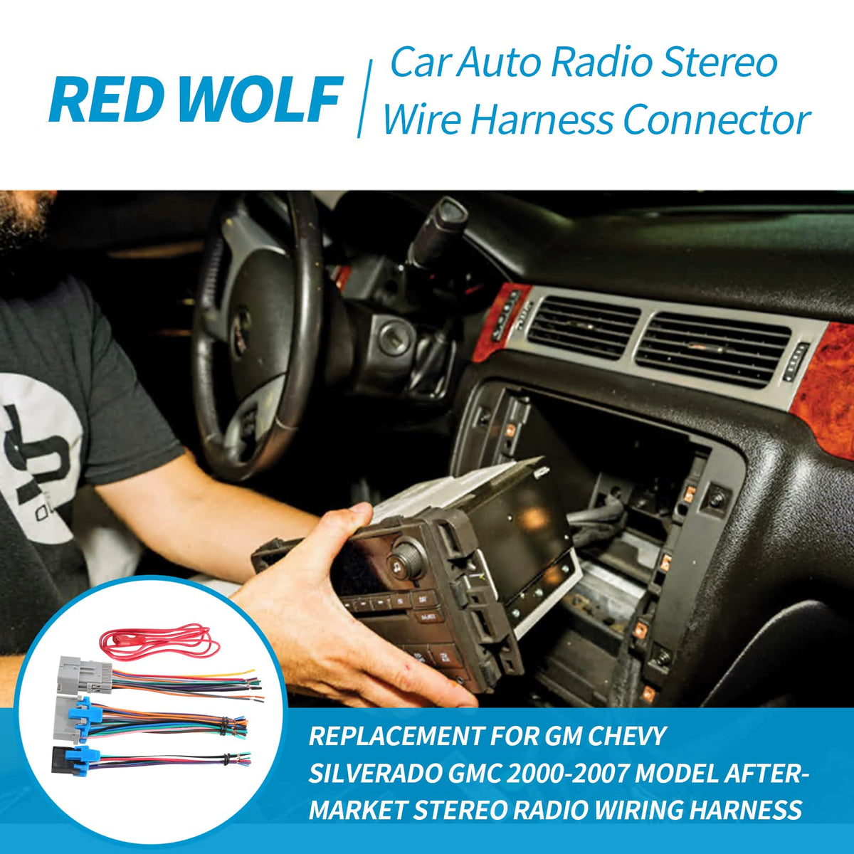 Q: Is the RED WOLF Radio Wiring Harness compatible with my 2006 GMC Sierra?A: Yes, the RED WOLF Radio Wiring Harness is compatible with GMC Sierra models from 2003 to 2007, making it an ideal choice for your 2006 GMC Sierra.