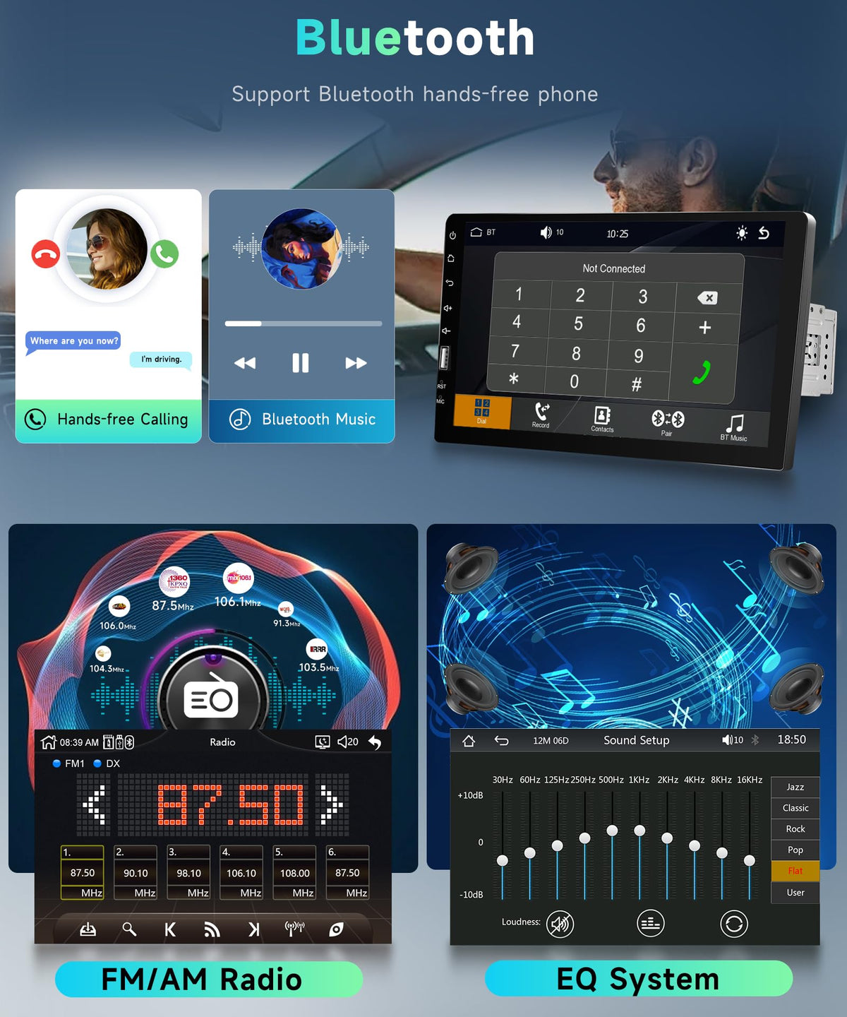 Features: 1. Built-In Car Play System: Connect With Mobile Phone To Access Mobile Phone Contacts, Email, Notification, Map Navigation, Music, Video And Other Information, And Also Implement Voice Control. 2. Android Auto ,Mobile Phone Download Android Auto, Use Usb Data Cable To Connect. 3. 9-Inch High Definition Touch Screen. 4. Support Sd Card, High-Speed Usb2.0 Interface Is Compatible With A Variety Of U Disk, Removable Hard Drive, Hot-Swappable. 5. Multiple Playback Modes:Support Usb Playback&Aux Music Playback&Bluetooth Playback. 6. Support Android/ Iphone Mirror Link: Ios One-Way: Ios Supports Mobile Phone One-Way Projection To The Machine. Android Two-Way: Android Supports Mobile Phone Two-Way Connection. 7. Am And Fm Radio,Full Digital Electronic Control Search Radio Stations, High-Performance Digital Tuning Fm Radio Automatically Scans, 18 Stations Memory