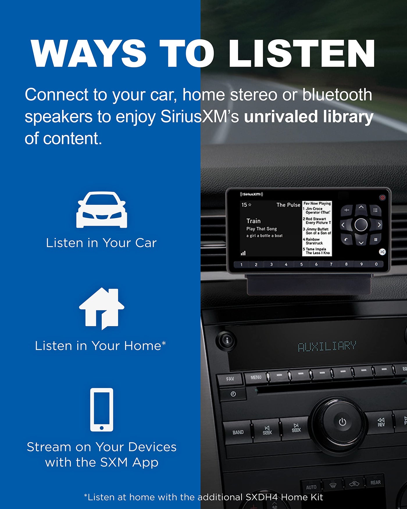 The Sxezr1V1 Onyx Ezr With Vehicle Kit Allows You To Enjoy Siriusxm Satellite Radio In Your Car And Beyond With This Dock And Play Radio Use Split-Screen Mode On The Easy-To-Read High-Res Screen To See What Other Channels Are Playing Choose From Two Display Options (White Text On Black Background Or Black Text On White Background) And View Artist Or Show Name, Song Or Program Title, And Content Or Channel Information You Can Easily Lock And Unlock Channels With Mature Content With The Parental Controls Store Up To 10 Of Your Favorite Siriusxm Channels Or Create Your Own Music Channel From Selected Channels With Tunemix Hear Exclusive Entertainment Only Available On Siriusxm Like Howard Stern, Today Show Radio, Fox News, Cnn And Kids Bop Radio Plus Live Play-By-Play Sports From The Nfl, Mlb, Nba, Nhl, The Best Games In College Sports And Nascar Races Hear Dedicated Ad-Free Music Channels From Your Favorite Artists Like The Beatles Channel, U2 X-Radio, Eminemas Shade 45, Kenny Chesneyas No Shoes Radio, Pitbullas Globalization, Bruce Springsteen E Street Radio, Pearl Jam Radio, Dave Matthews Band Radio And Jimmy Buffetas Margaritaville Receive 3 Months Free Service When You Subscribe To The Aall Accessa Package If Calling To Activate Your Radio, Provide Your Radio Id And Mention Anever Miss A Beata A 15 Dollar Activation Fee And Credit Card Are Required For This Offer Siriusxm Is Where Moments Happen Like The Moment You Hear Your Song Or You Laugh Or Your Team Takes The Lead These Moments Matter, And Youall Find Them Here, 247 In Ad-Free Music, Plus Talk, Sports, Comedy, And News Live And On Demand And Theyare On In Your Car, Online Or On The App So You Wonat Miss A Thing Subscription Sold Separately By Siriusxm