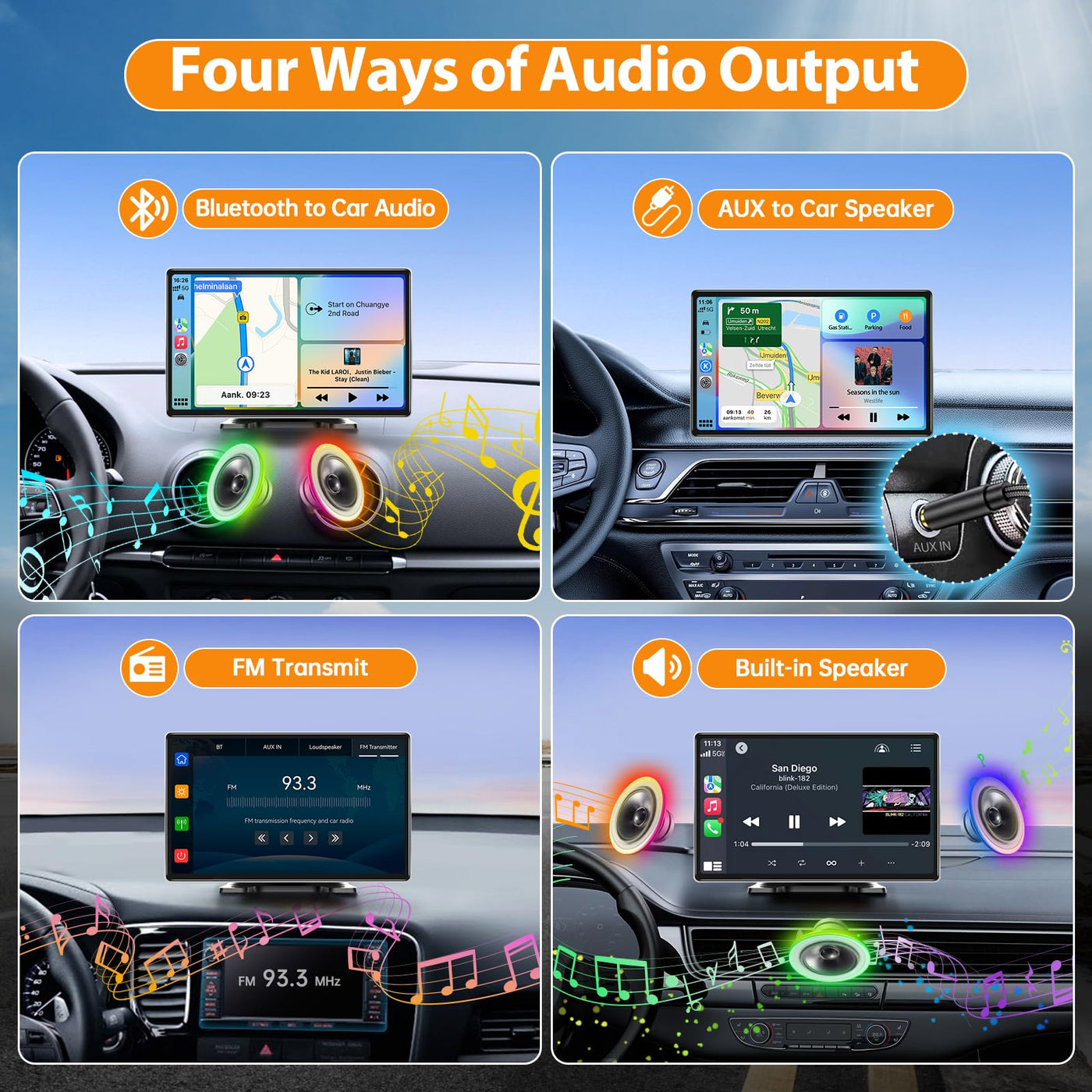 Some Features: Carplay And Android Auto: Make /Answer Phone Calls, Listen To Music, Real-Time Navigation, And More. Ips Touchscreen: With 1024*600 Resolution And 178 Full-Viewing Angle. Split Display: Front View+ Rear View. Dvr Loop Recording: Both Front And Rear Cameras Support Video Recording. Voice Control: Support Siri And Google Assistant. Easy To Install: Quick Install, No Skills Are Required. Wide Application: Supports 7-24V Cars And Trucks. Four Audio Output Modes Fm Radio: Transmit Sound From This Product To Your Original Car Audio System Via Fm Transmitter. Bluetooth: You Can Use Bluetooth Connection To Emit The Sound Of Carplay Through The Car'S Own Speakers Aux: Aux Input Can Output Product Sound To Your Original Car Radio. Car Stereo Speaker: You Can Also Make Sound Through The Built-In Speaker Of This Carplay.