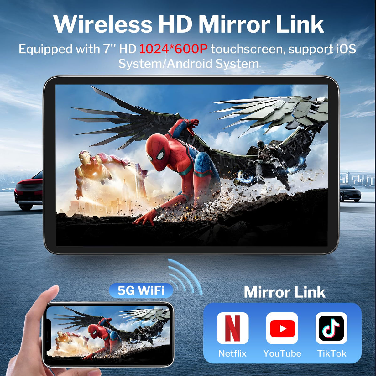 Wireless Apple Carplay Screen For Cars, 7 Hd Portable Car Stereo For Apple Carplay & Android Auto With Backup Camera/Mirror Link/Touchscreen/Siri/Voice Control/Gps Navigation/Aux For All Vehicles