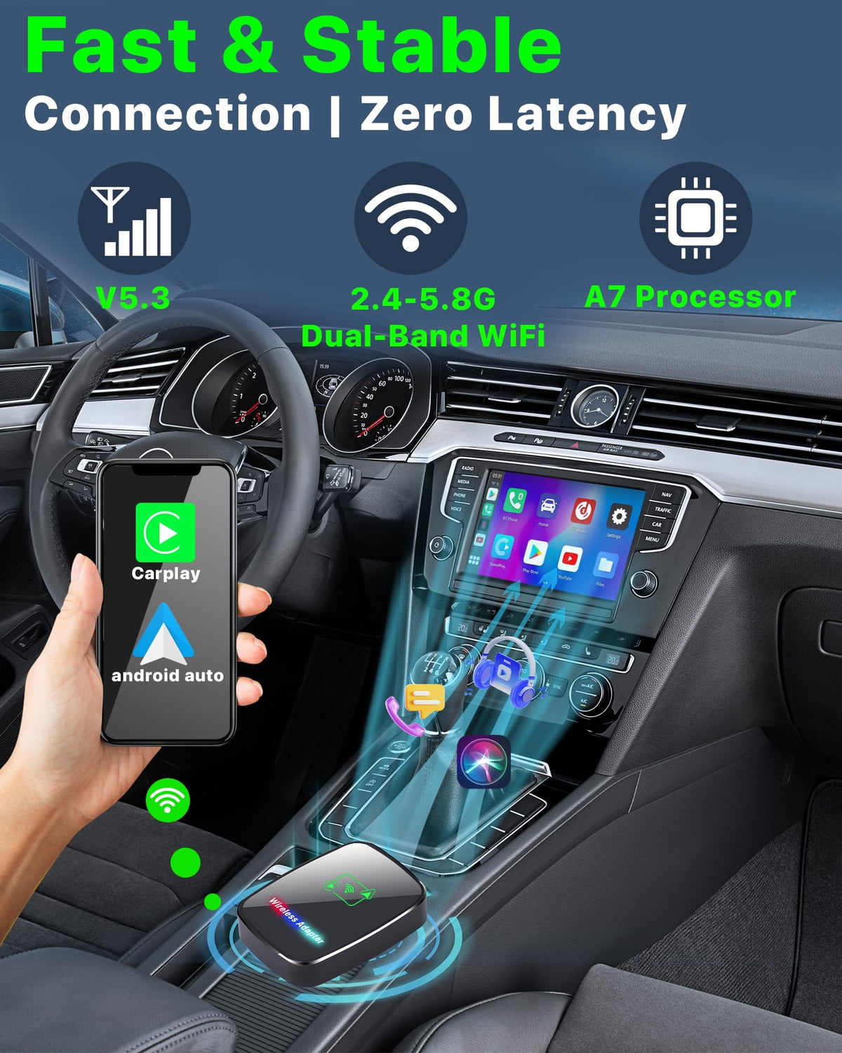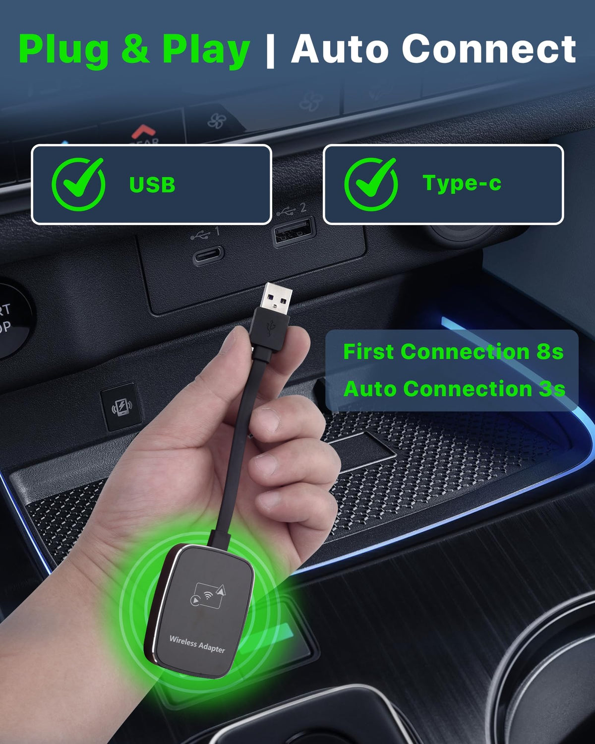 Upgrade To A Smarter Drive Enjoy 2025 Upgraded Wireless Carplay And Android Auto Adapter In Any Compatible Car With This Compact, High-Performance Adapter. Whether You'Re Driving To Work Or Heading Out On A Road Trip, It Offers The Freedom Of A Truly Wireless Experience-No Cords, No Fuss.Why Choose Us?Universal Support - Works With Iphone (Ios 10+) And Android (11+)Fast Pairing - Auto-Connects Via Usb Or Type-C In Secondssuper-Fast Signal - Built With 2.4+5.8Ghz Wifi + Bt 5.2 For Reliable, Smooth Connectioncompact & Clean - Mini Size Fits Anywhere, Perfect For A Tidy Car Interiordurable & Cool - Glass + Metal Housing Keeps It Cool And Performing At Its Bestwhether You'Re Streaming Spotify, Using Maps, Or Taking Hands-Free Calls, This Wireless Adapter Keeps You Connected-Wirelessly, Reliably, And Instantly.