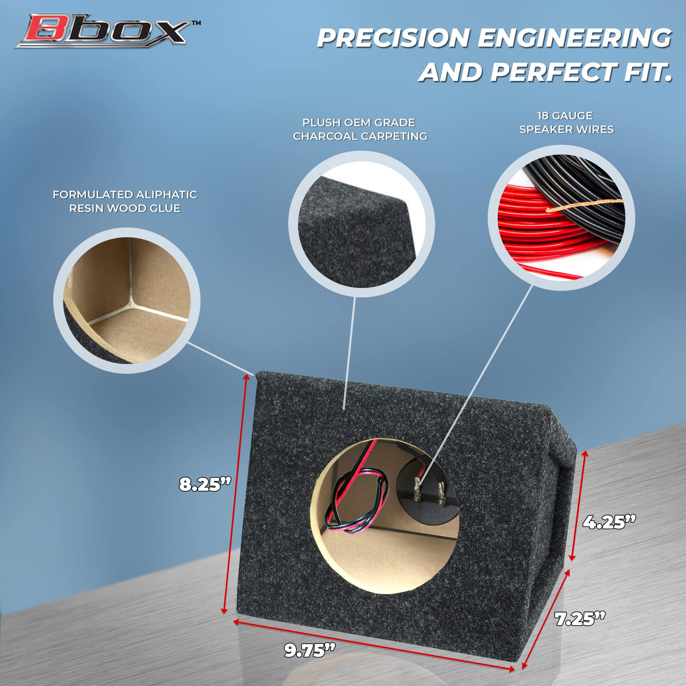 Atrend 6.5'' Sealed Speaker Box With Spring Loaded Terminals Superior Performance Backed By Quality Materials Is What You Can Expect From This 6.5'' Speaker Enclosure. This Enclosure Features Full .625'' Thick Hardwood Mdf, Miter & Dado Construction, Premium Carpet, Silver Spring Loaded Terminal Cups And Is Fully Glued & Braced With Fasteners. Features And Specifications Mdf Construction With .625'' Thickness Miter & Dado Construction With Premium Carpeted Finish Spring Loaded Large Terminal Cup With Wire Front Height: 8-1/8'' Back Height: 4-1/4'' Width: 9-3/4'' Depth: 7'' Mounting Hole Width: 5-3/4'' Approximate Mounting Depth: 5-3/4'' Gross Cubic Feet: .20