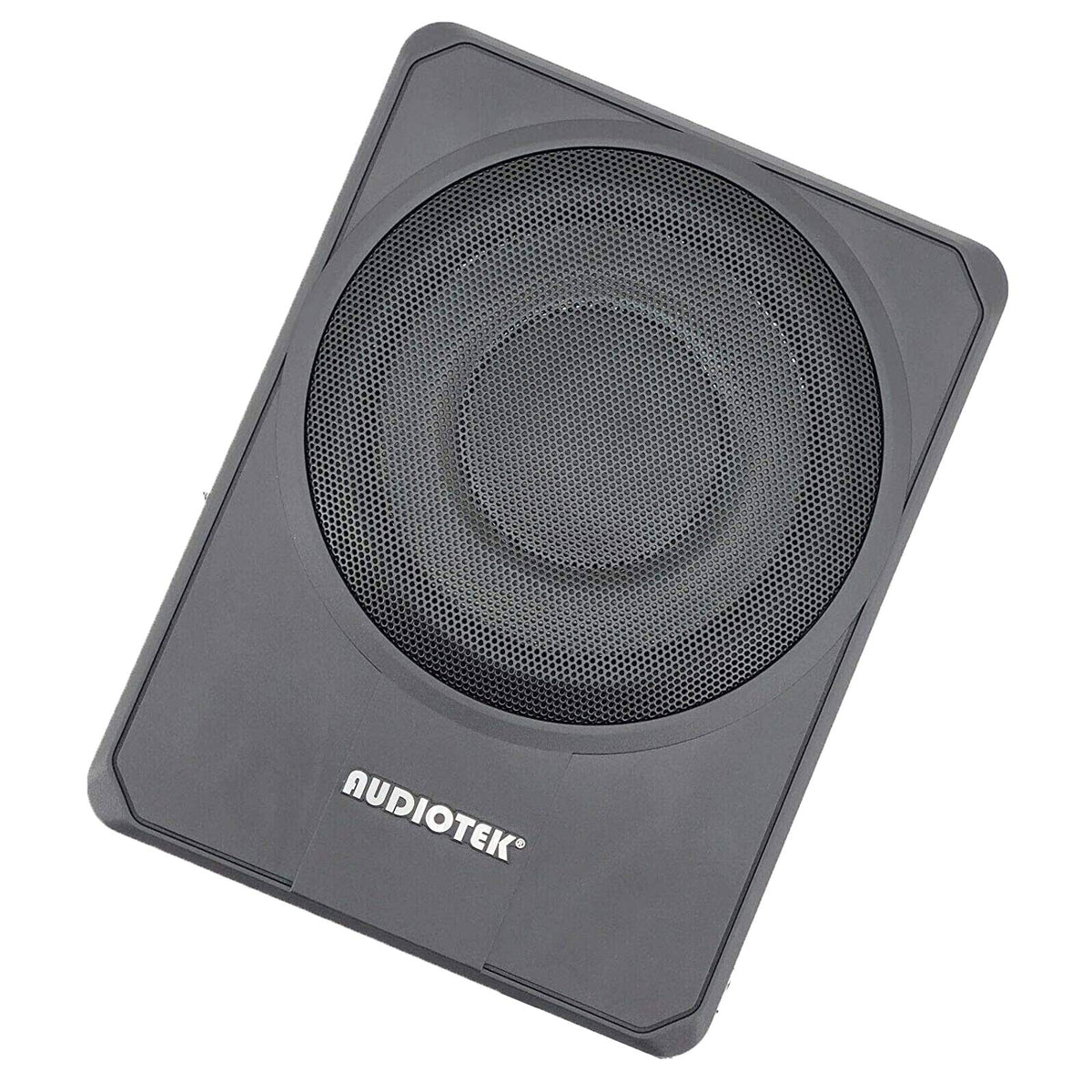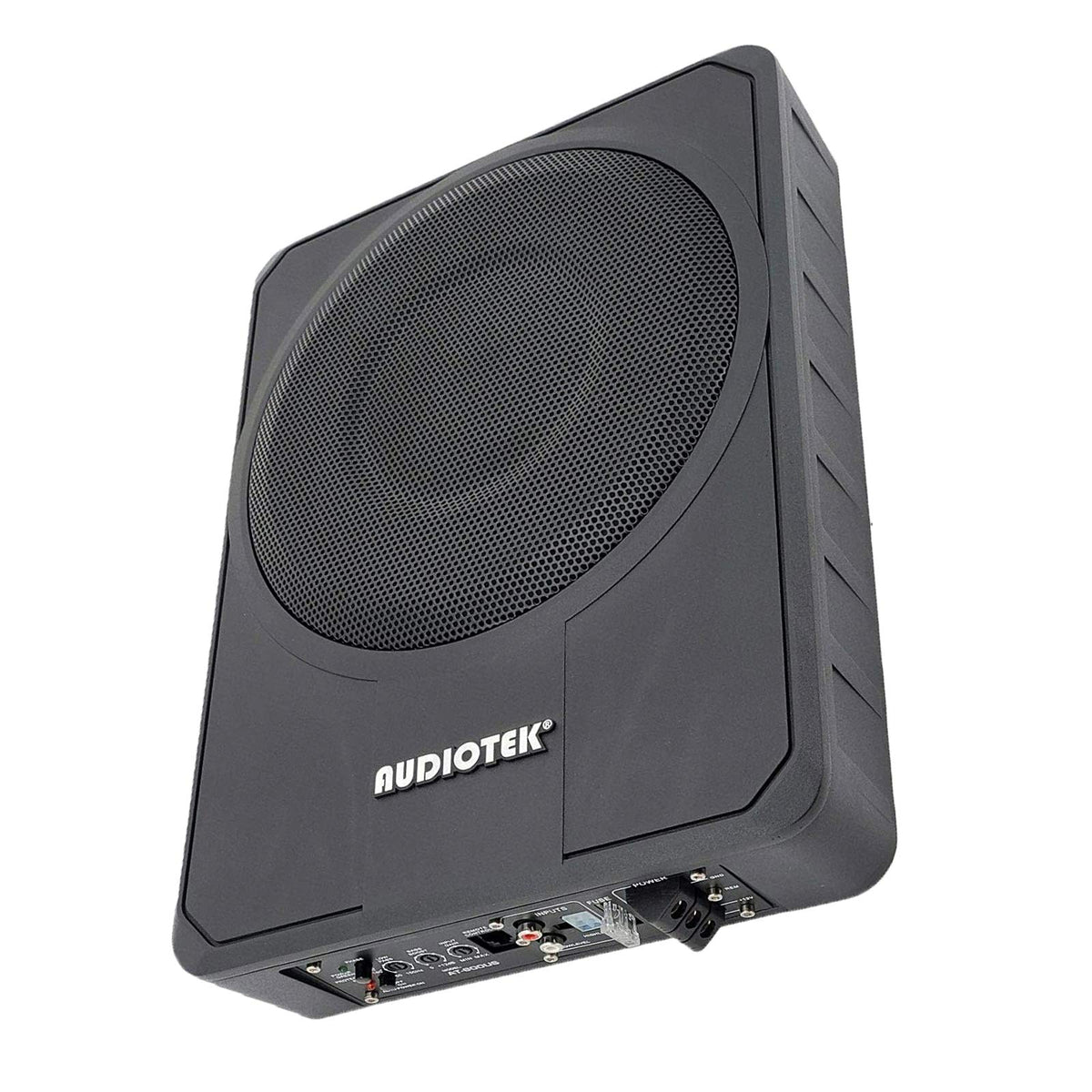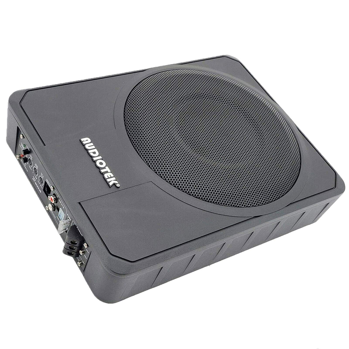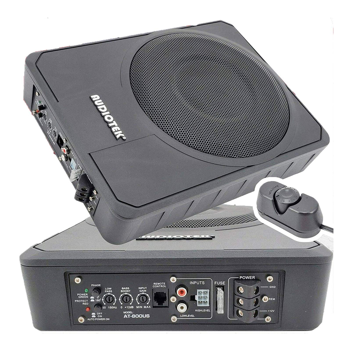 If You Do Not Have A Lot Of Space In Your Car, A Hideaway Car Subwoofer Is Your Best Option. This Is Usually A Compact Woofer With A Slim Form Factor That Allows It To Be Easily Tucked Under A Seat. One Of The Best Things About The Under-Seat Car Subwoofer Is That It Is Very Easy To Install By Almost Anyone. Additionally, Since It Uses The Space Under The Seat As An Enclosure, It Produces A Deeper And Even More Powerful Bass Which Compensates For Its Small Size. The Audiotek Compact At-800Us Is A Popular Solution For Car Owners On A Budget That Doesn'T Want To Sacrifice Sound Quality . This Model Is An All-Inclusive Solution That Packs A Powerful Peak Of 800 Watts Of Power With 200 Watts Rms. The Cone Is At 10 Inches, And Since The Cone Is Small, It Vibrates More And Produces A Punchy Bass That Is Harmonious. Additionally, This Under Seat Subwoofer Can Be Remotely Controlled For Better Convenience. Also On The Upside, If You Like Tweaking Your Music Then There Is A Number Of Customizations That You Can Do. It Still Sounds Good At Default Setting For Those Who Simply Do Not Care About Bass Tuning. Additionally, There Are Many Audio Customizations That Can Be Performed In This Woofer. People Who Care How Their Bass Sound Will Like This Unit Very Much. As Almost Expected From A Company Like Audiotek, It Is Equipped With Advanced Circuits That Help Protect And Prolong Its Lifespan. Circuits Like Overheat Protection Or Reverse Polarity Can Come In Handy For Those Who Like To Listen To Their Music Loud. As For The Built Quality, It Is Excellent. The Whole Unit Is Made Of Aluminum That Does A Good Job Absorbing Heat And Preventing The Woofer From Overheating During Extended Usage At Loud Volumes. Moreover, The Front Metal Grille Adds Protection To The Diaphragm And Help To Extend The Life Of The Woofer. Overall, This Is A Excellent Model, And This Hideaway Subwoofer From Audiotek Is Durable, Offers Many Audio Customizations And Very Easy To Install.