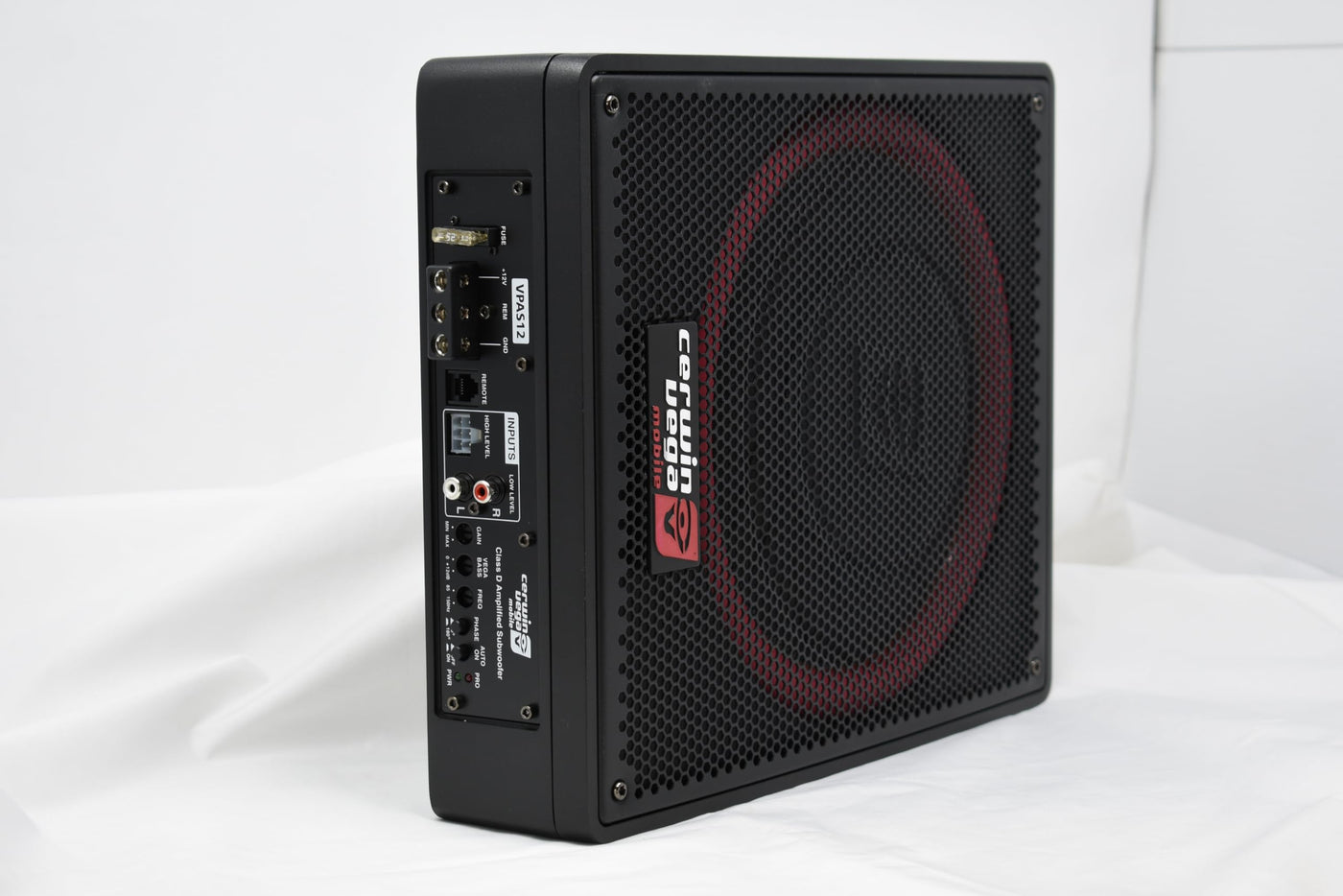Unleash The Power Of Superior Sound With Cerwin-Vega Mobiles Vega 12'' Powered Active Subwoofer. Designed For The Audiophile In You, This Subwoofer Car Audio System Redefines Your Music Experience Without Compromising On Space. Its Compact Design Ensures A Seamless Fit In Your Vehicle, Offering A High-Quality Bass Boost That Resonates With Every Beat. Key Features: Powerful Performance: 250W Rms, 600W Max Enhanced Bass Control: 0-12Db Boost Customizable Frequencies: Lpf 30-150Hz Phase Adjustment: 0 Or 180 Degrees Reliable Operation: Pwm Mosfet, Thermal Protection Easy Input Tuning: Adjustable Sensitivity Convenient Control: Remote Subwoofer Access Versatile Connectivity: Rca, High-Level Inputs Innovative Design: Passive Radiator Technology Compact Size: 13.6'' X 11.1'' X 3.15'' Lightweight Build: Weighs 7.67 Kg Immerse Yourself In The Depth Of Music With This 12 Inch Car Subwoofer, Boasting A System Car Audio Technology That'S Both Powerful And Precise. The Passive Radiator Design Of This 12 Inch Subwoofers Car Audio Unit Enhances Bass Response, Making Every Drive A Musical Journey. Whether It'S For Casual Listening Or Audiophile-Grade Sound, This Powered Subwoofer Car Audio System Delivers Consistent, High-Quality Performance. The Built-In Amplifier And Thermal Protection Circuit Ensure Longevity And Durability, Making It A Reliable Addition To Your Car Audio Setup. Why Choose Cerwin-Vega'S Vega 12'' Subwoofer? Space-Saving Design: Fits Perfectly In Any Trunk Without Taking Up Valuable Space. Plug-And-Play: Simple Operation For Instant Audio Enhancement. Unmatched Quality: From A Brand Synonymous With Top-Tier Car Audio Subwoofers. Feel The Beat, Live The Rhythm, And Transform Your Car Into A Concert Hall On Wheels.