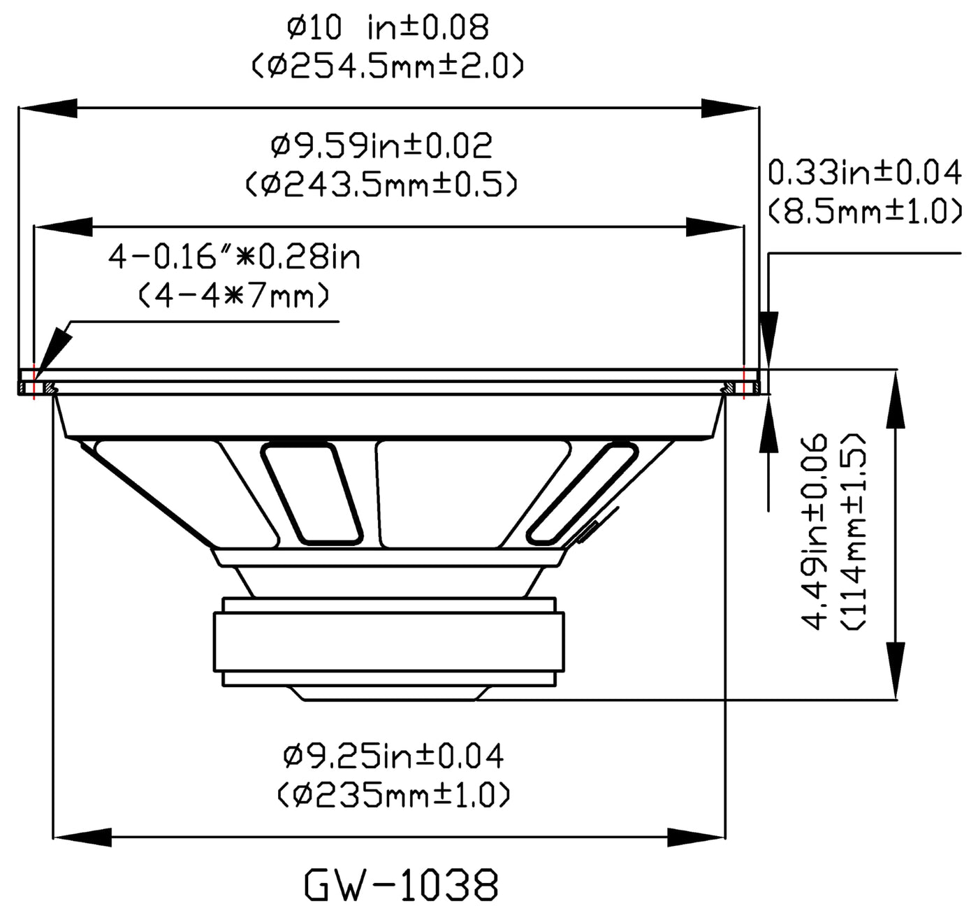 This Goldwood Sound 8 Ohm 10 Inch Driver Has A Max Wattage Of 250 Watts And Is Designed And Engineered Right Here In The Usa. This Woofer Features A 30Oz Magnet With Butyl Rubber Surround And Poly Mica Cone. This Woofer Is A High End, Pro Audio Transducer Optimized For All Musical Instrument, Dj, Car Audio And Professional Applications.