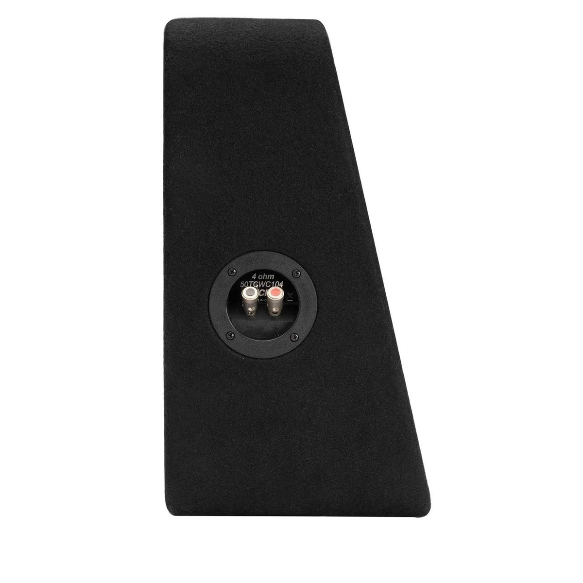 10'' Compc 4 Ohm Enclosure The Compc Thin Profile 10-Inch Subwoofer Enclosure Comes Loaded A Single 4-Ohm Terminal. Features: Fits Perfectly Under Or Behind A Seat Genuine Compc Subwoofer Custom Port Design Made Of Heavy Mdf Spring Loaded Speaker Terminal Thick Black Carpet Protects The Enclosure Embroidered Kicker Logo Works Perfectly With Cx600.1 Specifications Subwoofer (In, Cm) 10, 25 Impedance (Ohms) 2 Power Watts (Peak/Rms) 600/300 Sensitivity (Db 1W/1M) 93.8 Box Top Depth (In, Cm) 4,10.2 Box Bottom Depth (In, Cm) 7-5/8, 19.4 Box Height (In, Cm) 15, 38.1 Box Width (In, Cm) 21-1/2, 54.6 Recommended Amplifiers! Cx600.1-The Ideal Match