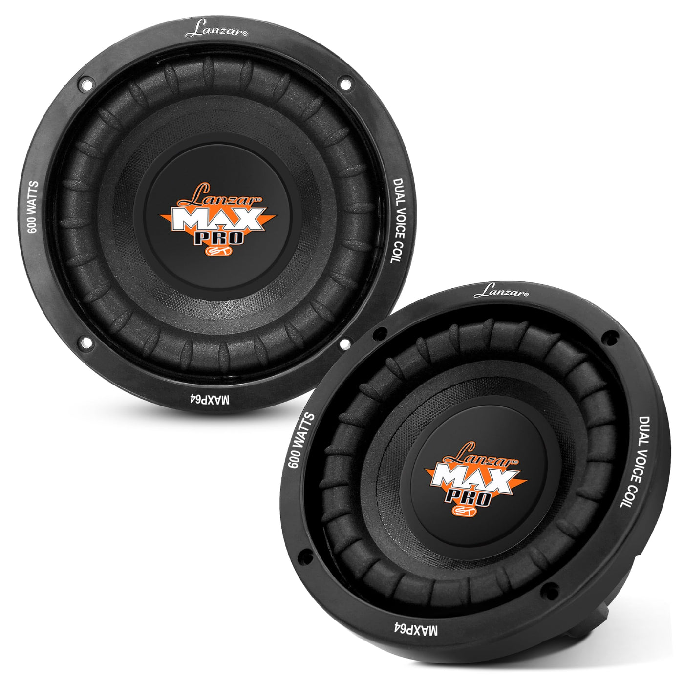 Product Description6 5'' High Power Subwoofer Non-Press Paper Cone Specially Treated Foam Edge Suspension 1 5'' High-Temperature Aluminum Voice Coil Magnet Weight 40 Oz Impedance 4 Ohm Fs 80Hz Qms 4 05 Qes 1 3 Qts 1 2 Spl 87(Db) Vas 6 8(Cuft) Mounting Depth 3'' Rubber Magnet Boot Cover Sold As Unit Weight 3 87 Lbsfrom The Manufacturerlanzar Maxp64 600 Watt Subwooferpush Your Audio To The Max! Installation Specifications/Diagram Pair It With A Lanzar Amp!Discover A New Dimension Of Audio Excellence With Lanzarif You Are Looking For A Clean-Cut, Powerful, And Versatile New Sound, Lanzar Has Your Audio Solution. Add Performance And Quality Enhancement To Your Audio System With High-Quality And Rugged Subwoofers. Already Own A Lanzar Subwoofer? Connect An Aditional One To Your Audio System And Multiply The Performance And Sound To Add Some Serious Head-Turning Bass-Bounce. Lanzar Subwoofers Will Bring New Life To Your Audio System, Especially If You Own One Of Lanzar'S Vast Line Of Amplifiers. These Powerhouses Are The Driving Force Behind Any Great Audio Setup And Will Provide You With The Sound Quality And Performance You?Ve Been Missing. Whether You'Re Looking To Upgrade The Audio System For Your Car Or Boat, Lanzar Has Everything You Need To Play Your Music, Your Way! Superior Sound Quality And Performancelanzar?S Max-Series Speakers Will Push Your Audio To The Max! This 6.5'' Small-Enclosure Sub Will Add Extra Punch To Your Low-End And Give You That Huge Sound You Want. The Sound Is Produced By The 1.5? High-Temperature Aluminum Voice Coil With The Help Of A 40 Oz. Heavy-Duty Magnet, Pushing 600 Watts Max Power. It?S All Housed In A Stamped Steel Basket For Heavy-Duty Stability. Your Booming Sound Is Enhanced By The Wide, Non-Fatiguing Rubber Suspension And Specially Designed Rubber Magnet Boot That Keeps Your Equipment Safe And Extends The Life Of The Product.About Lanzarjoin The World Of Excellence In Sound Quality. Lanzar Car And Boat Audio Systems Are Some Of The Most Advanced Pieces Of Automotive Electronics. Our Products Are The Result Of An Extensive Engineering Program With The Sole Purpose Of Creating Performance-Enhancement With The Finest Sounding Audio. At Lanzar We Believe In Craftsmanship, Quality, And Accuracy! It Takes All Of These To Deliver True Quality Performance In Both Construction, And Sound Reproduction. These Are The Back Bones To All Of Our Lanzar Product Line-Up. Our Optidrive Line Of Products Have Been Key Choice Of Db Drag Professionals Worldwide. We Have A Proven Track Record That Has Allowed Our Lanzar Products To Grace The Audiophile World For Several Decades. We Would Like To Say Thank You To Our Loyal Lanzar Community, And We Look Forward To Continue Providing Exceptional Service And Quality. Some Companies Focus On The Customer, Some Focus On Quality. At Lanzar, We Don'T Need To Compromise.