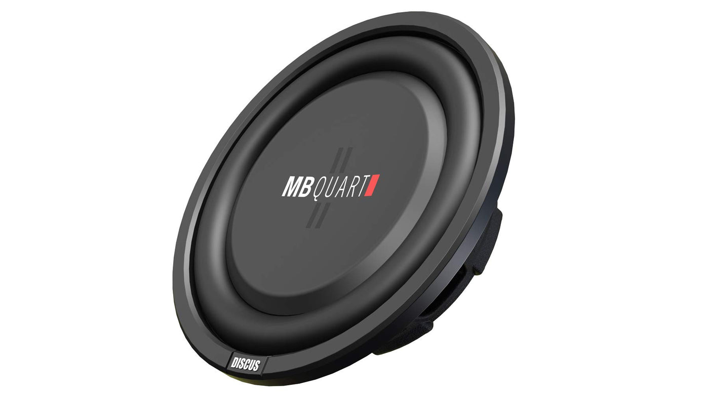 Mb Quart Discus 600 Watt 10 Inch Shallow Mount Subwoofer With Dual 4 Ohm 2 Inch Voice Coils, Thermal Formed Poly Cone, Vented Aluminum Former And Butyl Surround. Less Than 3 Inches Mounting Depth.